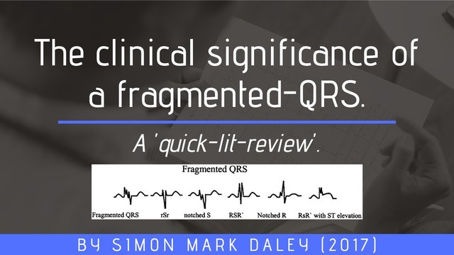 evidence across a significant variety of studies to indicate that fQRS is a predictor of future major adverse cardiac events (MACE) (including arrhythmic events)/mortality/poor prognosis in patients with known coronary artery disease (CAD)/ acute coronary syndromes, left ventricular dysfunction, cardiomyopathy, and Brugada syndrome. There is less evidence (but some) of this in suspected CAD, acquired QT prolongation, sarcoidosis, amyloidosis and arrhythmogenic right ventricular cardiomyopathy/dysplasia (ARVC/D).