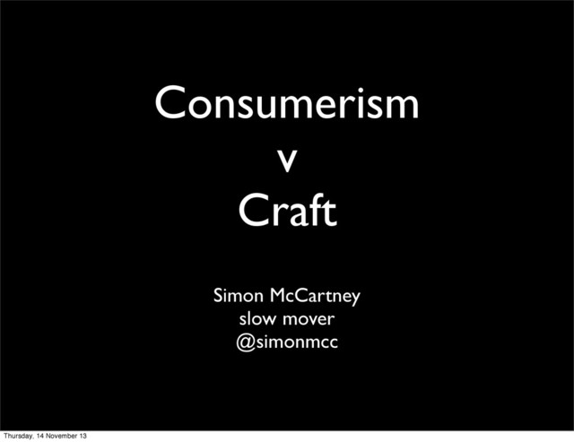 Consumerism v Craft Simon McCartney slow mover @simonmcc Thursday, 14