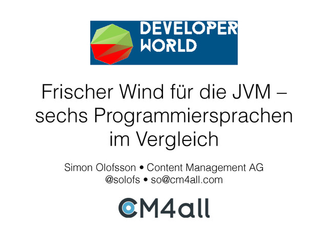 Slides zu meinem Vortrag auf der Heise Developer World 2015. http://developerworld.heise.de https://github.com/simono/jvm-languages-examples