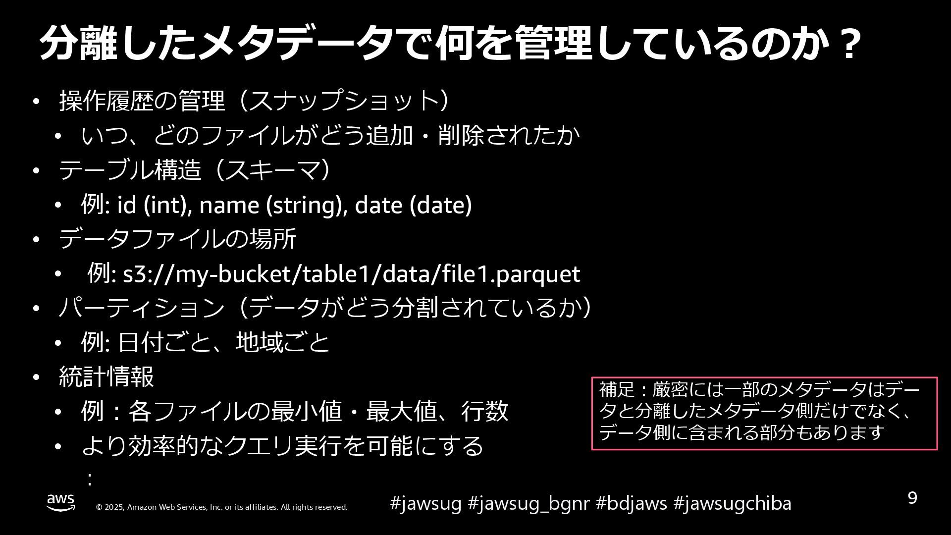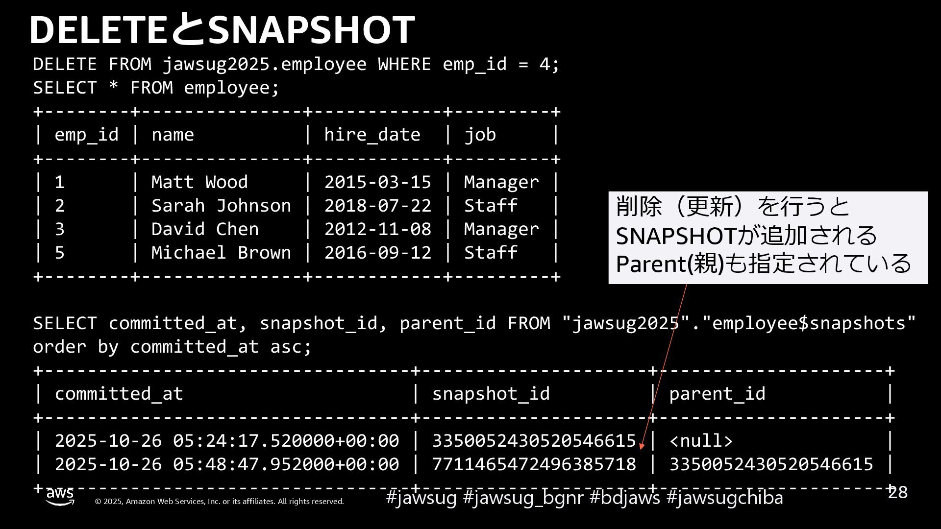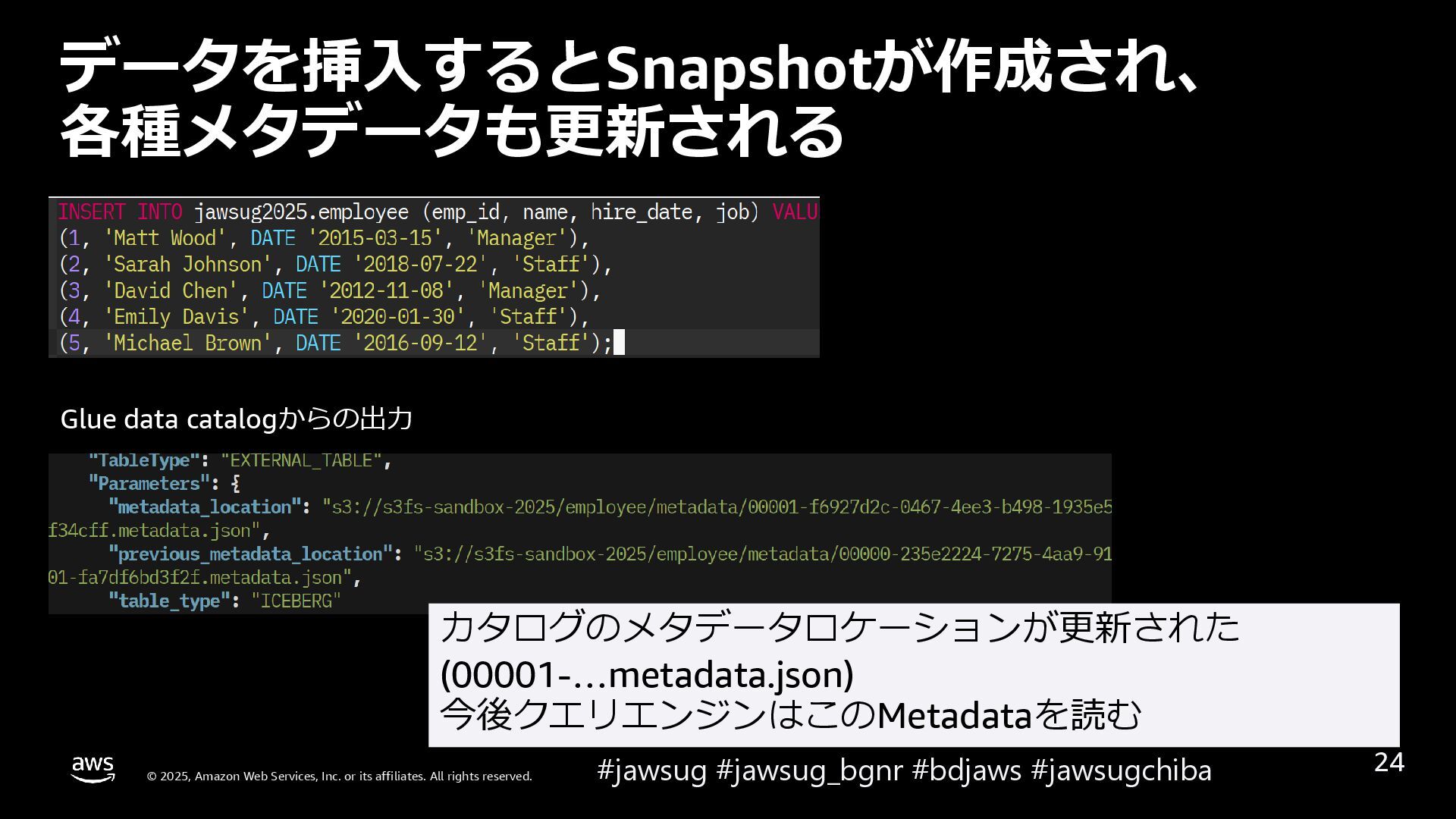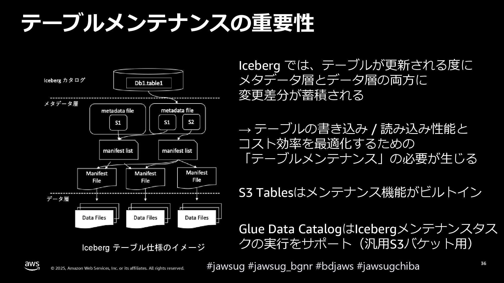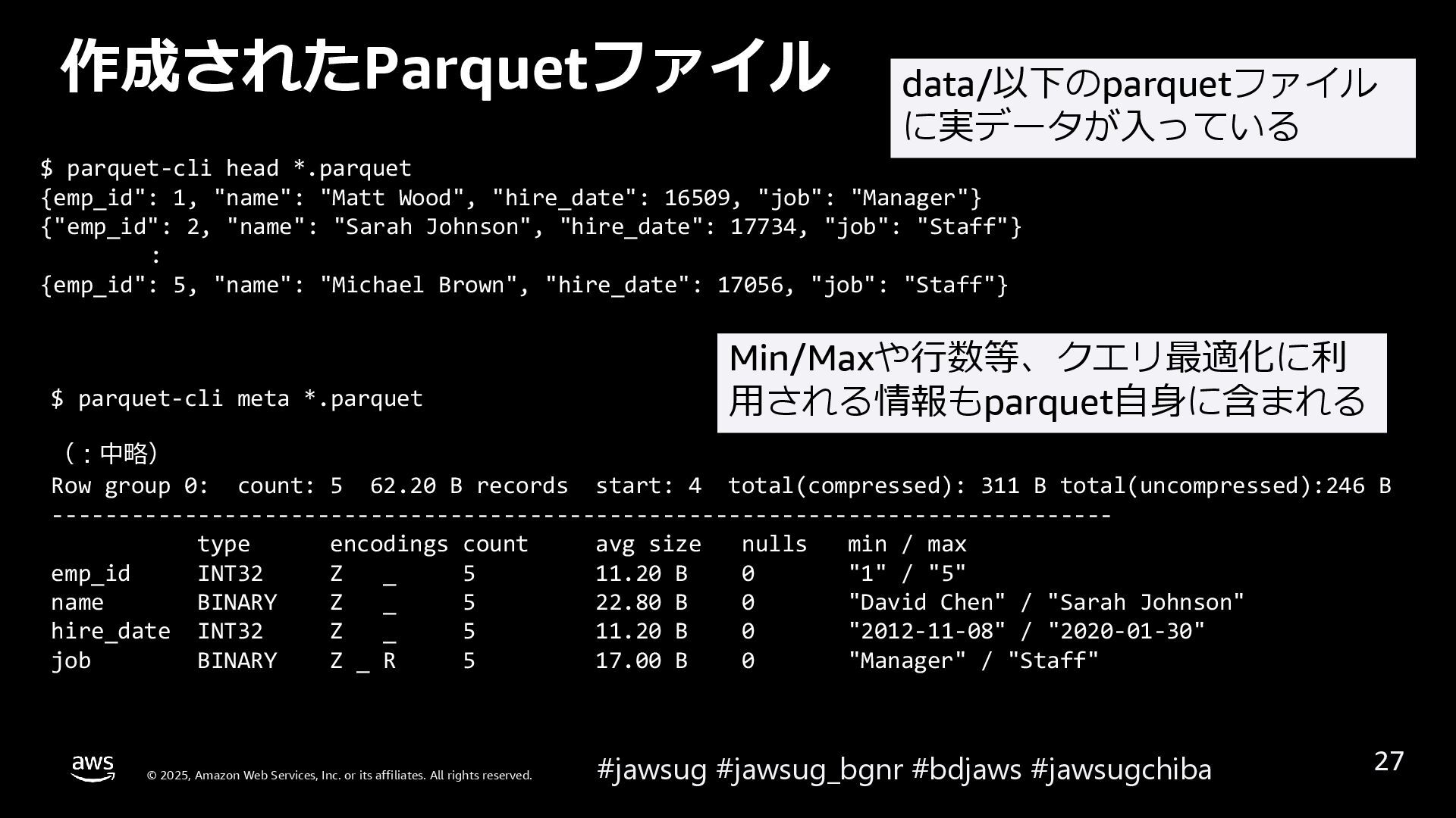 2025年10月28日開催、JAWS-UG初心者支部 / BigData支部 / 千葉支部 合同の「Apache Iceberg勉強会」での発表資料です。