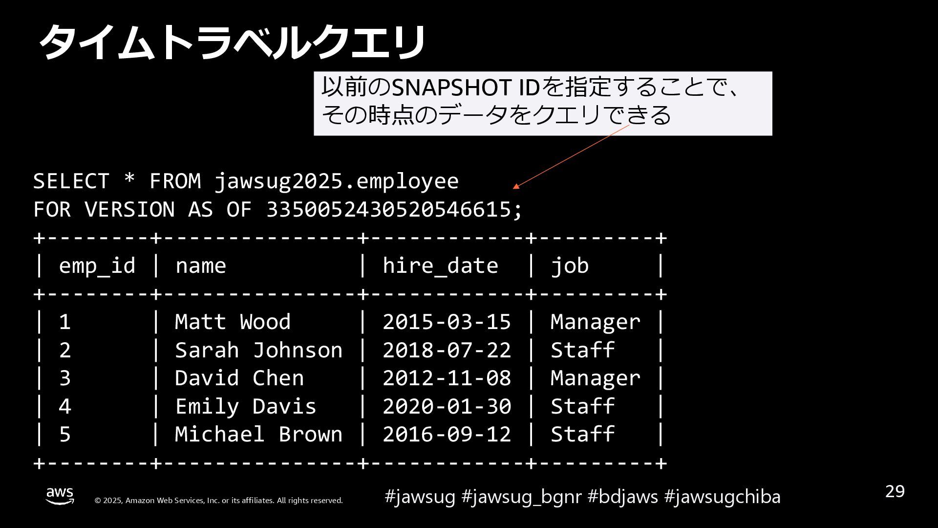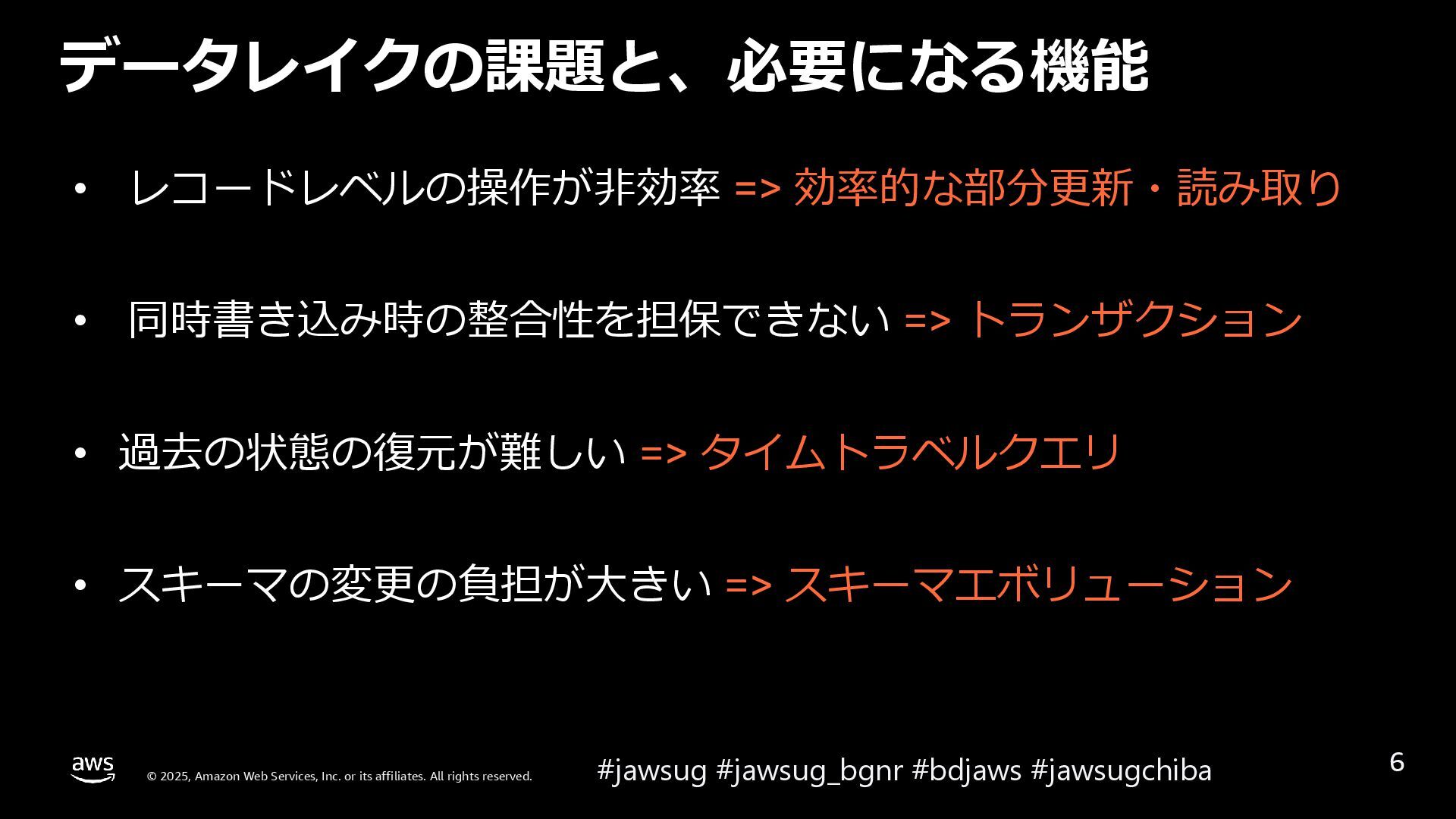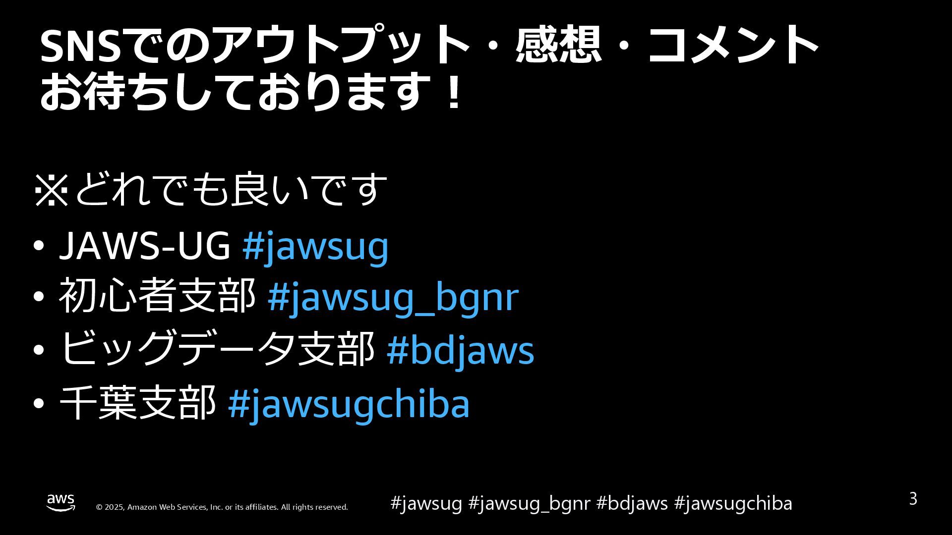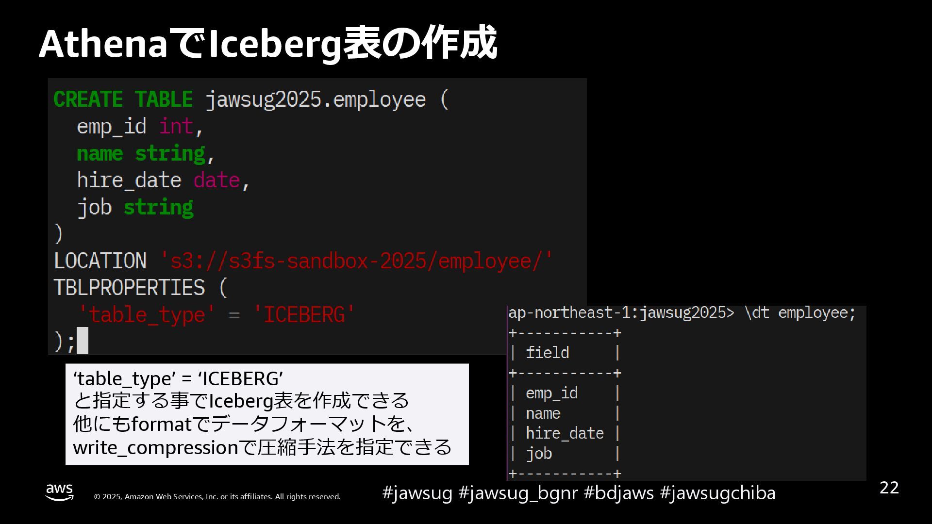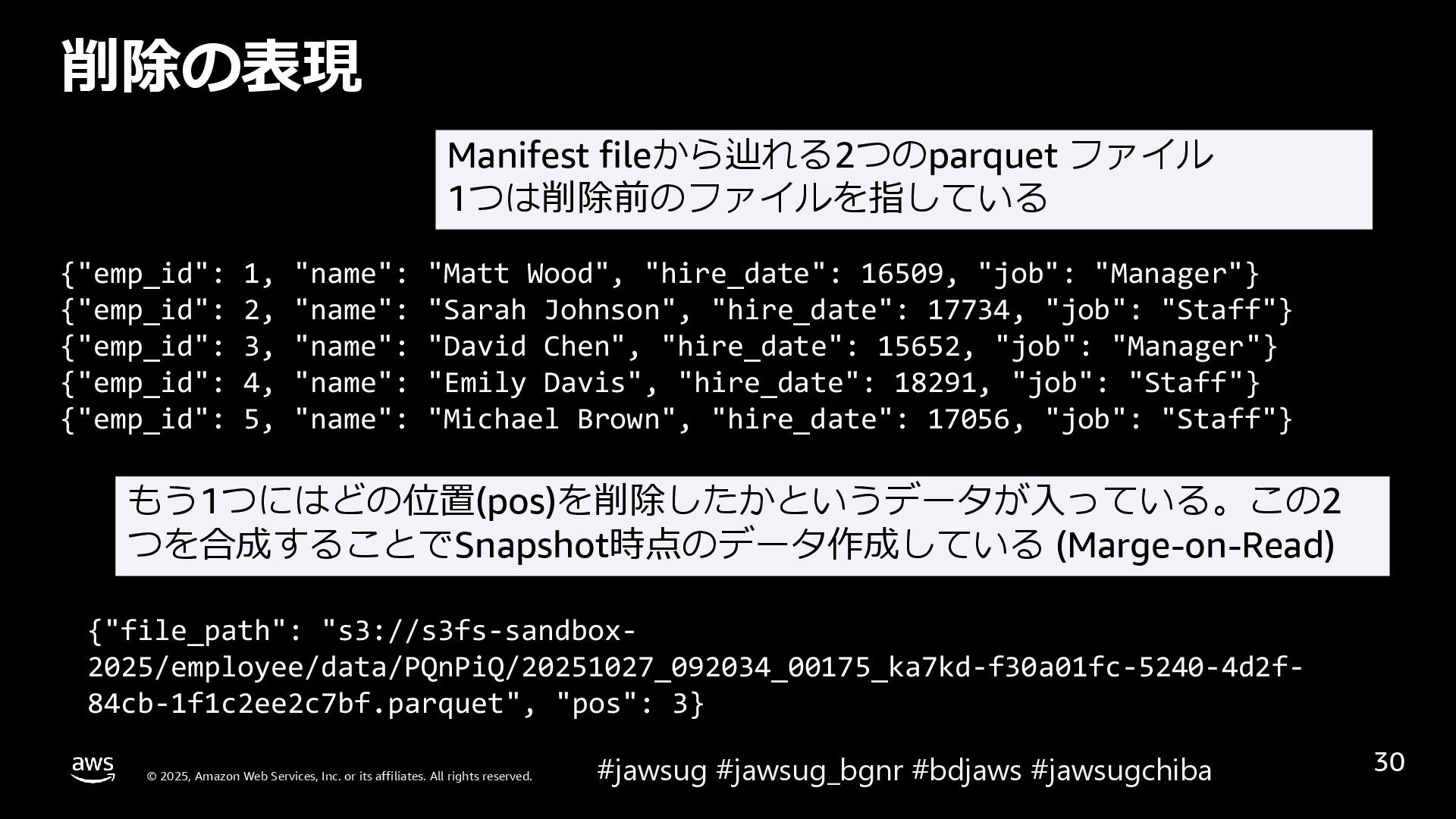 2025年10月28日開催、JAWS-UG初心者支部 / BigData支部 / 千葉支部 合同の「Apache Iceberg勉強会」での発表資料です。