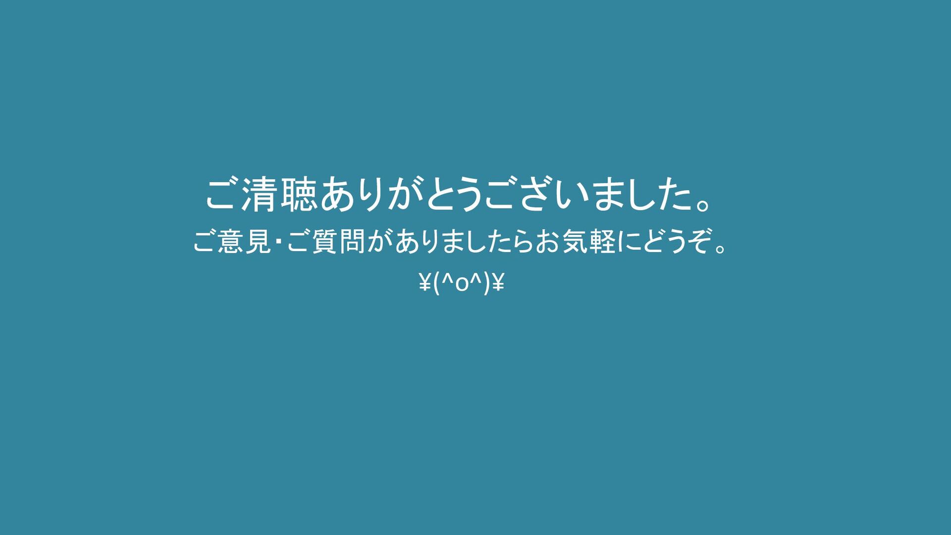 ご清聴ありがとうございました。 ご意見・ご質問がありましたらお気軽にどうぞ。 ¥(^o^)¥
