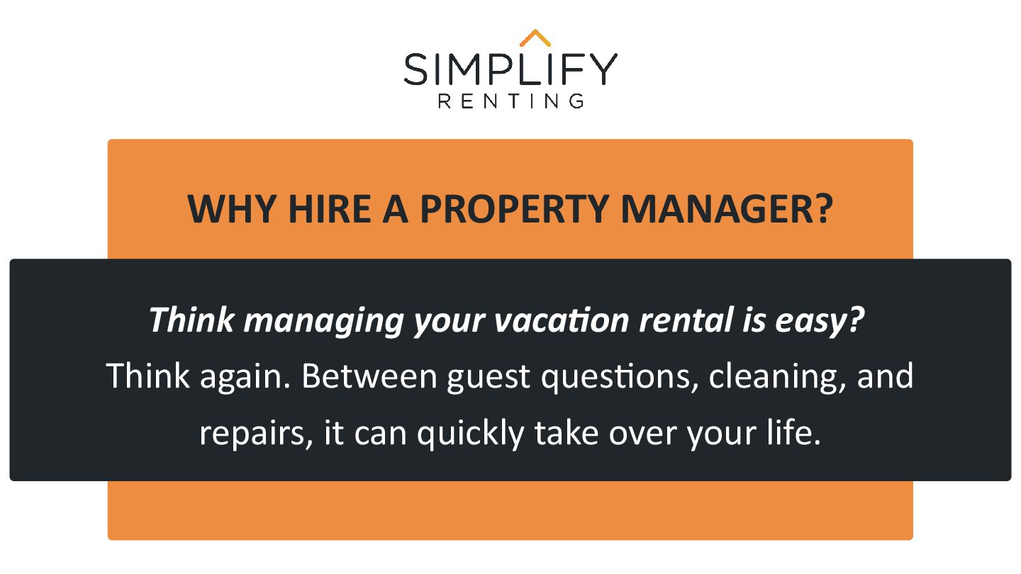 https://simplifyrenting.com/ - A property manager brings invaluable expertise to your vacation rental. From handling guest communication to maintaining the property, they ensure everything runs smoothly. Their deep understanding of the local market helps set the right pricing and attract more guests. With their marketing skills, your property gains maximum exposure, increasing bookings and improving your nightly rates. Let go of the stress and trust an expert to manage your property. Take the next step in boosting your rental’s success by partnering with a property manager today!