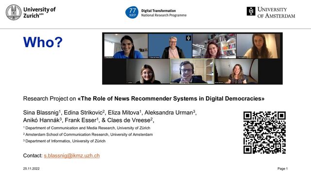 gets left behind if we focus on popularity-based recommenders? what categories, e.g., topics, regions, actors, formats etc. are over- or underrepresented 2) Provide a solution: – What would need to be pushed in a diversity-maximizing recommender? what categories, e.g., topics, regions, actors, formats etc. – Can this be done in a transparent way? E.g., by showing why something is recommended 25.11.2022 Page 5