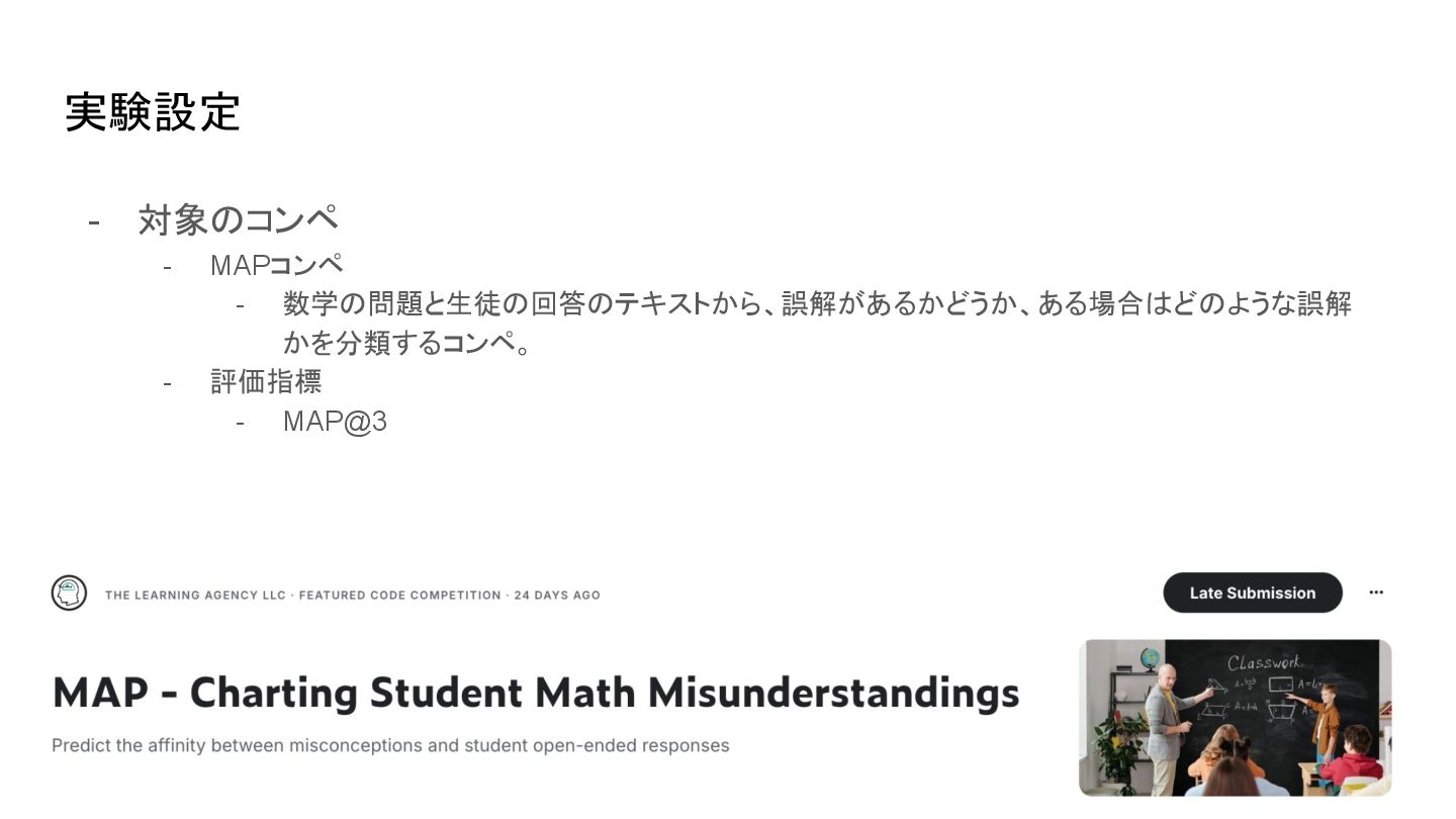 Kaggle MAPコンペ: https://www.kaggle.com/competitions/map-charting-student-math-misunderstandings