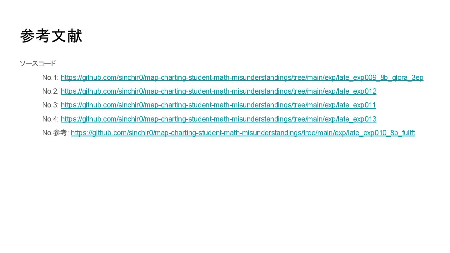 No.2: https://github.com/sinchir0/map-charting-student-math-misunderstandings/tree/main/exp/late_exp012