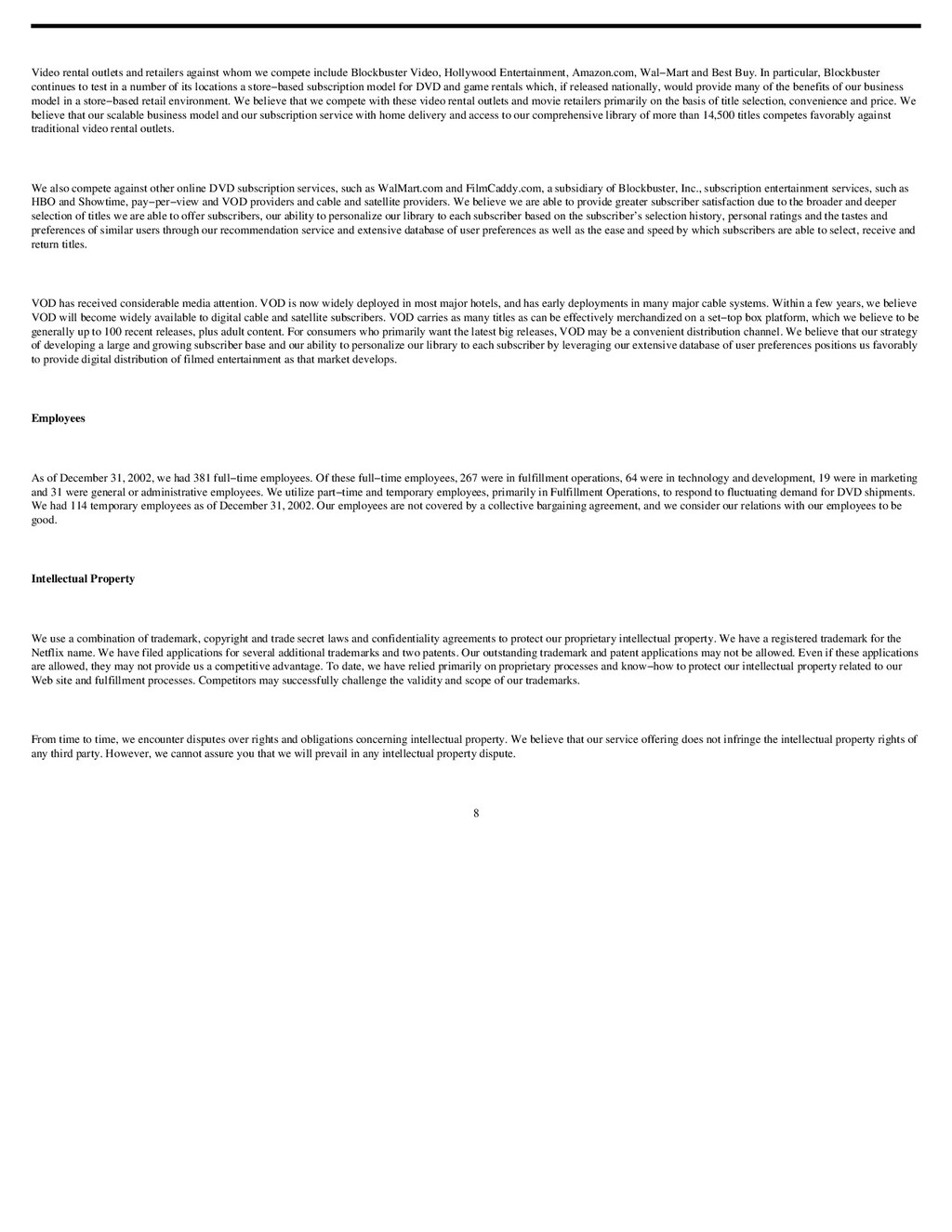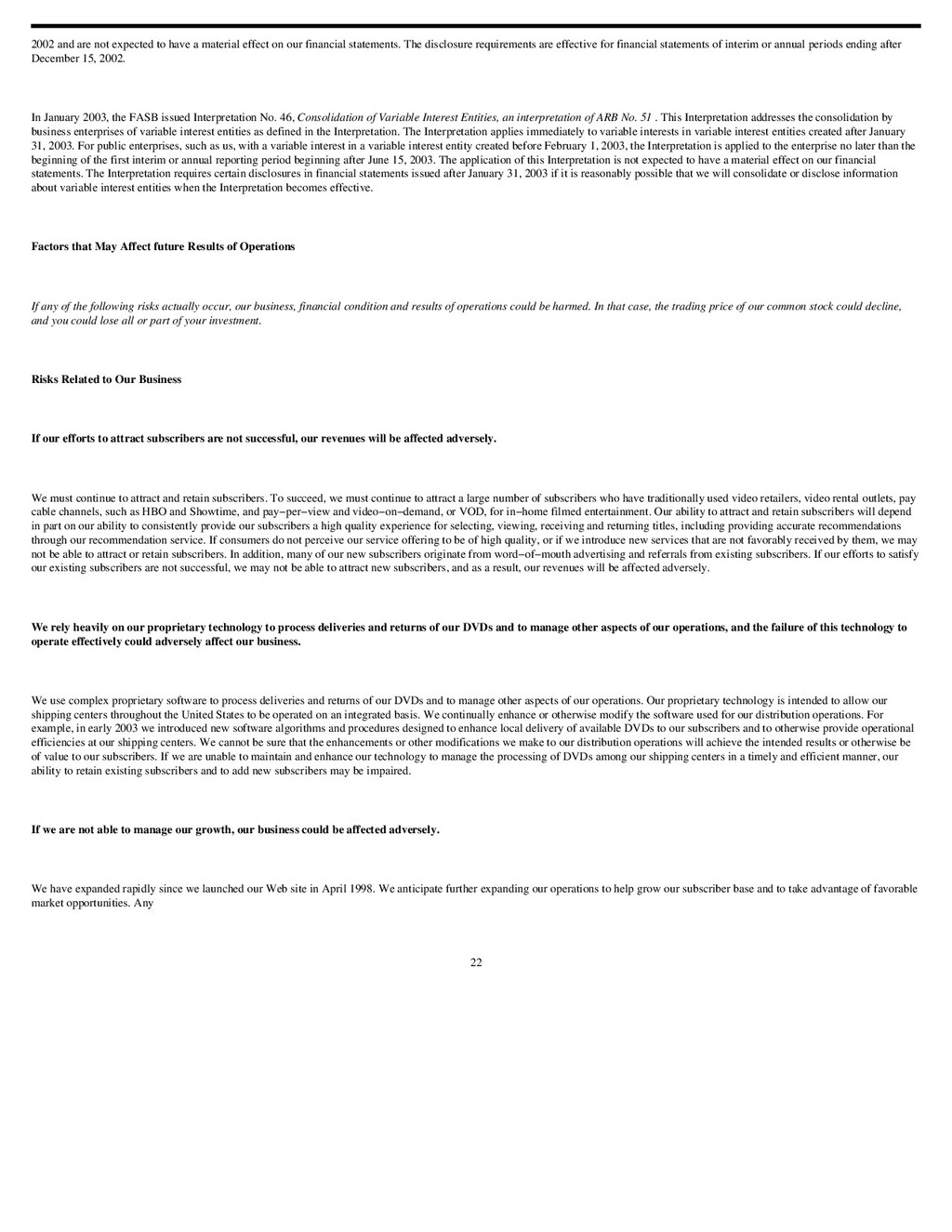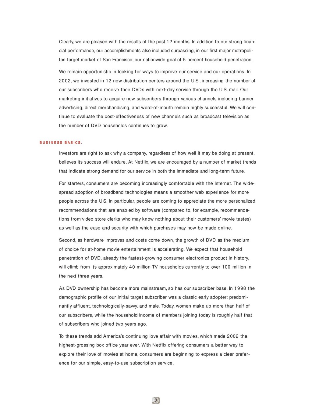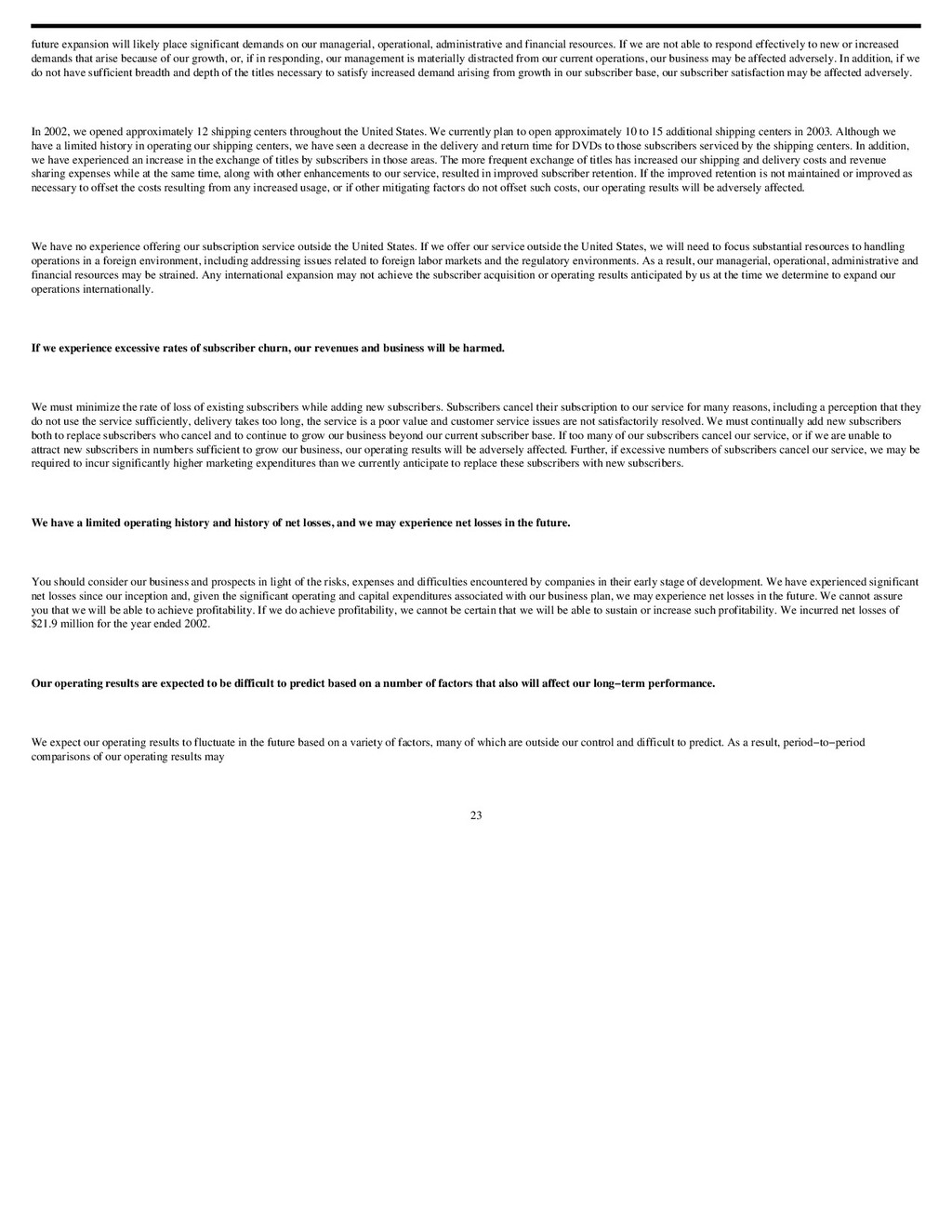 (in thousands, except share data) Convertible Preferred Stock Common Stock Additional Paid−in Capital Deferred Stock− Based Compen− sation Accumulated Other Compre− hensive Income Compre− hensive Loss Accum− ulated Deficit Total Stock− holders' (Deficit) Equity Shares Amount Shares Amount Balances as of January 1, 2000 4,444,545 $ 4 2,074,160 $ 2 $ 16,092 $ (6,841) $ — $ (41,285) $ (32,028) Exercise of options and issuance of restricted stock — — 81,003 — 422 — — — 422 Repurchase of restricted stock — — (26,653) — (141) — — — (141) Issuance of common stock in exchange for services rendered — — 7,258 — 306 — — — 306 Warrants issued in connection with operating lease — — — — 216 — — — 216 Warrants issued in connection with services rendered — — — — 285 — — — 285 Warrants issued in connection with debt financing — — — — 105 — — — 105 Subscribed Series F non−voting preferred stock — — — — 6,128 — — — 6,128 Deferred stock−based compensation, net — — — — 11,228 (11,228) — — — Stock−based compensation expense — — — — — 8,803 — — 8,803 Net loss — — — — — — — $ (57,363) (57,363) (57,363) Appreciation (depreciation) in value of available−for−sale securities — — — — — — — — — — Comprehensive loss — — — — — — — $ (57,363) — — Balances as of December 31, 2000 4,444,545 4 2,135,768 2 34,641 (9,266) — (98,648) (73,267) Exercise of options — — 30,046 — 125 — — — 125 Repurchase of restricted stock — — (5,625) — (12) — — — (12) Issuance of common stock in exchange for services rendered — — 1,666 — 10 — — — 10 Warrants issued in connection with subordinated notes payable — — — — 10,884 — — — 10,884 Warrants issued in connection with capital lease obligation — — — — 172 — — — 172 Warrants issued in exchange for services rendered — — — — 18 — — — 18 Issuance of Series F non−voting preferred stock 1,712,954 2 — — 4,279 — — — 4,281 Subscribed Series F non−voting preferred stock — — — — 217 — — — 217 Deferred stock−based compensation, net — — — — 2,145 (2,145) — — — Stock−based compensation expense — — — — — 5,686 — — 5,686 Net loss — — — — — — — $ (38,618) (38,618) (38,618) Appreciation (depreciation) in value of available−for−sale securities — — — — — — — — — — Comprehensive loss — — — — — — — $ (38,618) — — Balances as of December 31, 2001 6,157,499 6 2,161,855 2 52,479 (5,725) — (137,266) (90,504) Exercise of options — — 438,838 — 1,287 — — — 1,287 Issuance of common stock under Employee Stock Purchase Plan — — 47,746 — 363 — — — 363 Repurchase of restricted stock — — (1,729) — (6) — — — (6) Issuance of Series F non−voting preferred stock 3,492,737 4 — — 1,314 — — — 1,318 Issuance of common stock, net of costs — — 6,328,084 6 86,208 — — — 86,214 Conversion of preferred stock into common stock (9,650,236) (10) 3,216,740 3 7 — — — — Conversion of redeemable convertible preferred stock into common stock — — 9,659,700 10 101,820 — — — 101,830 Issuance of common stock upon exercise of warrants — — 594,561 1 195 — — — 196 Deferred stock−based compensation, net — — — — 15,505 (15,505) — — — Stock−based compensation expense — — — — — 9,831 — — 9,831 Net loss — — — — — — — $ (21,947) (21,947) (21,947) Appreciation (depreciation) in value of available−for−sale securities — — — — — — 774 774 — 774 Comprehensive loss — — — — — — — $ (21,173) — — Balances as of December 31, 2002 — $ — 22,445,795 $ 22 $ 259,172 $ (11,399) $ 774 $ (159,213) $ 89,356 See accompanying notes to financial statements. F−5