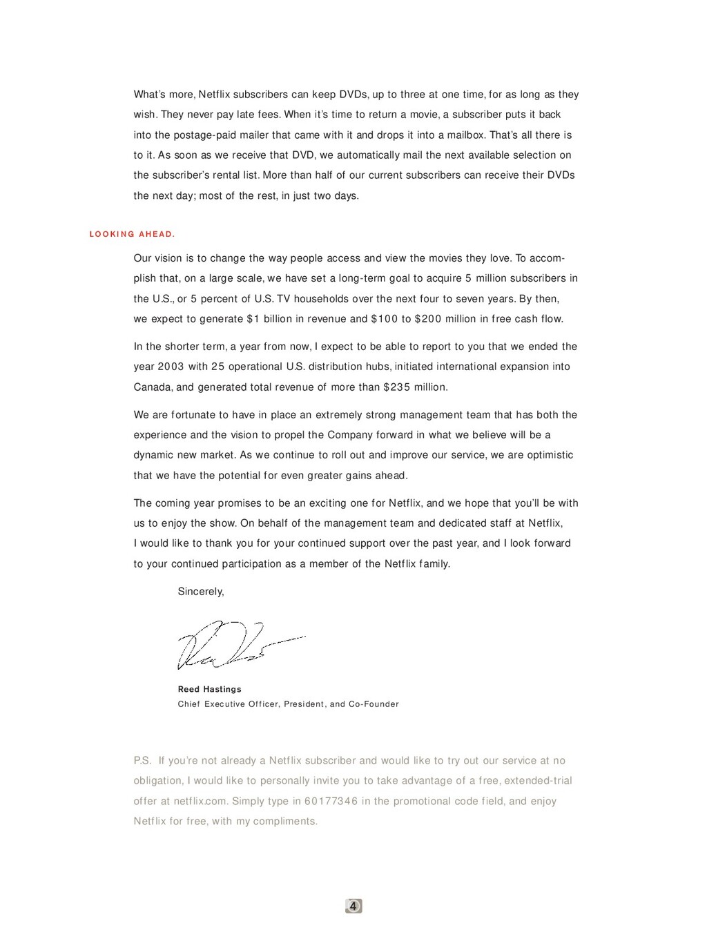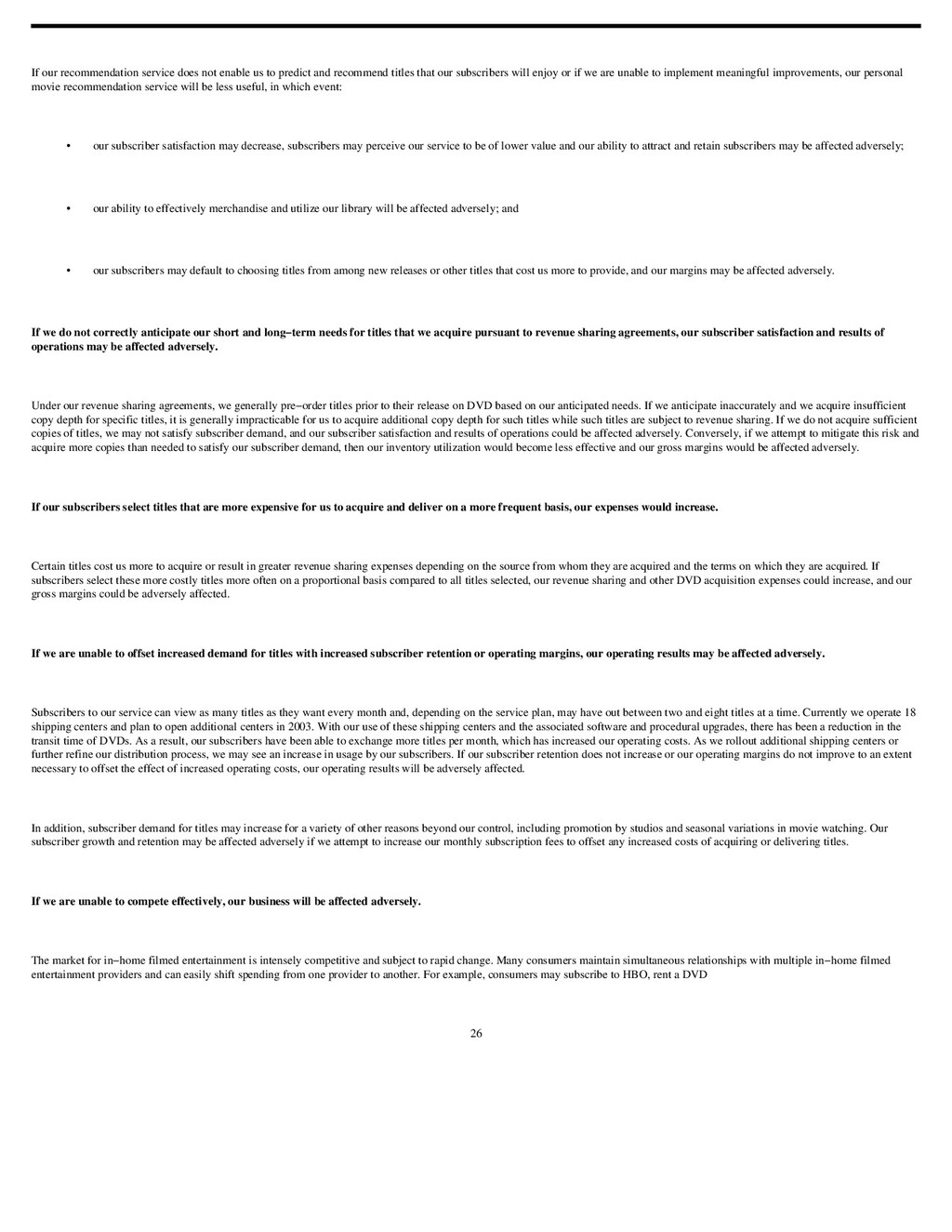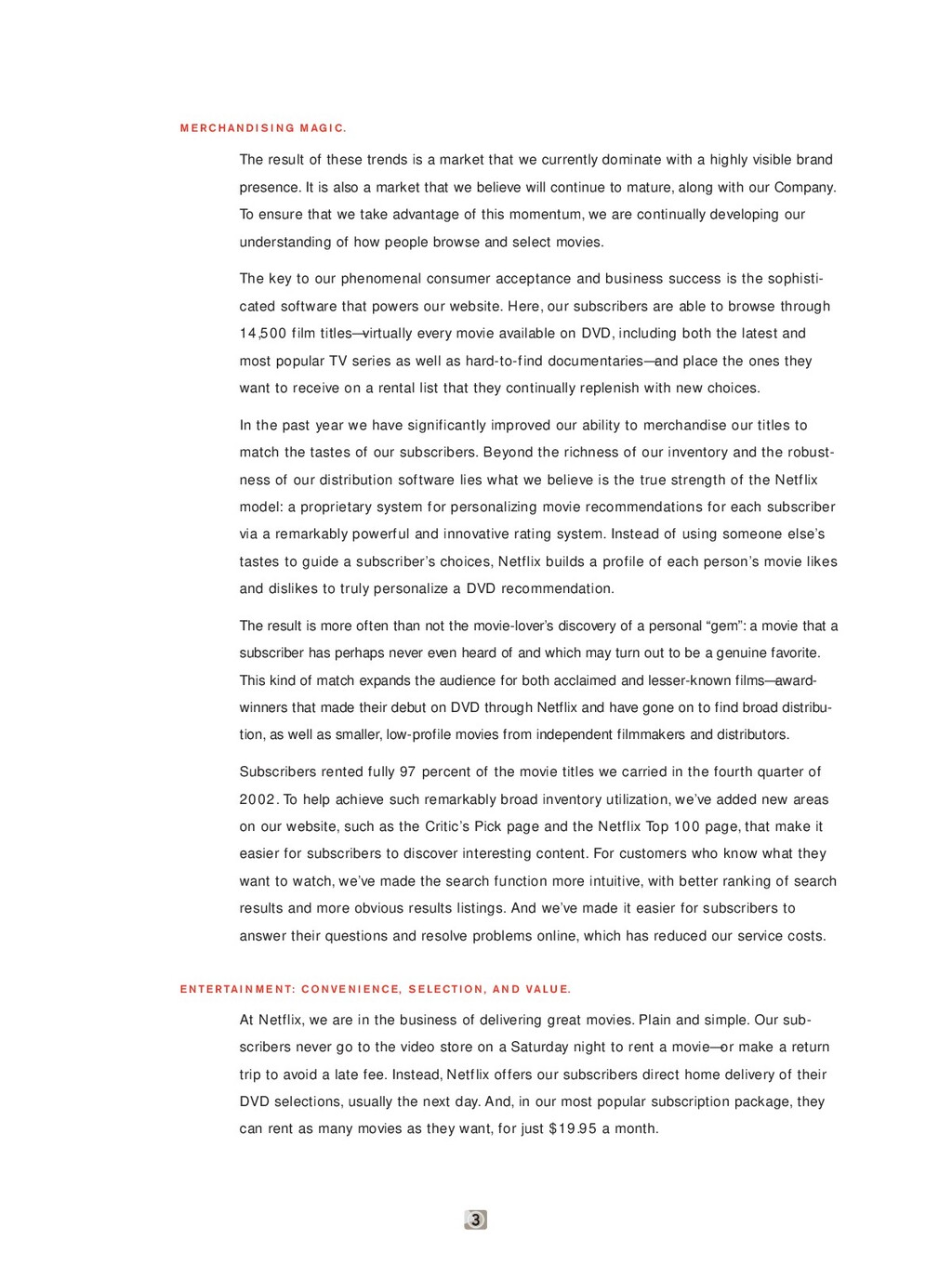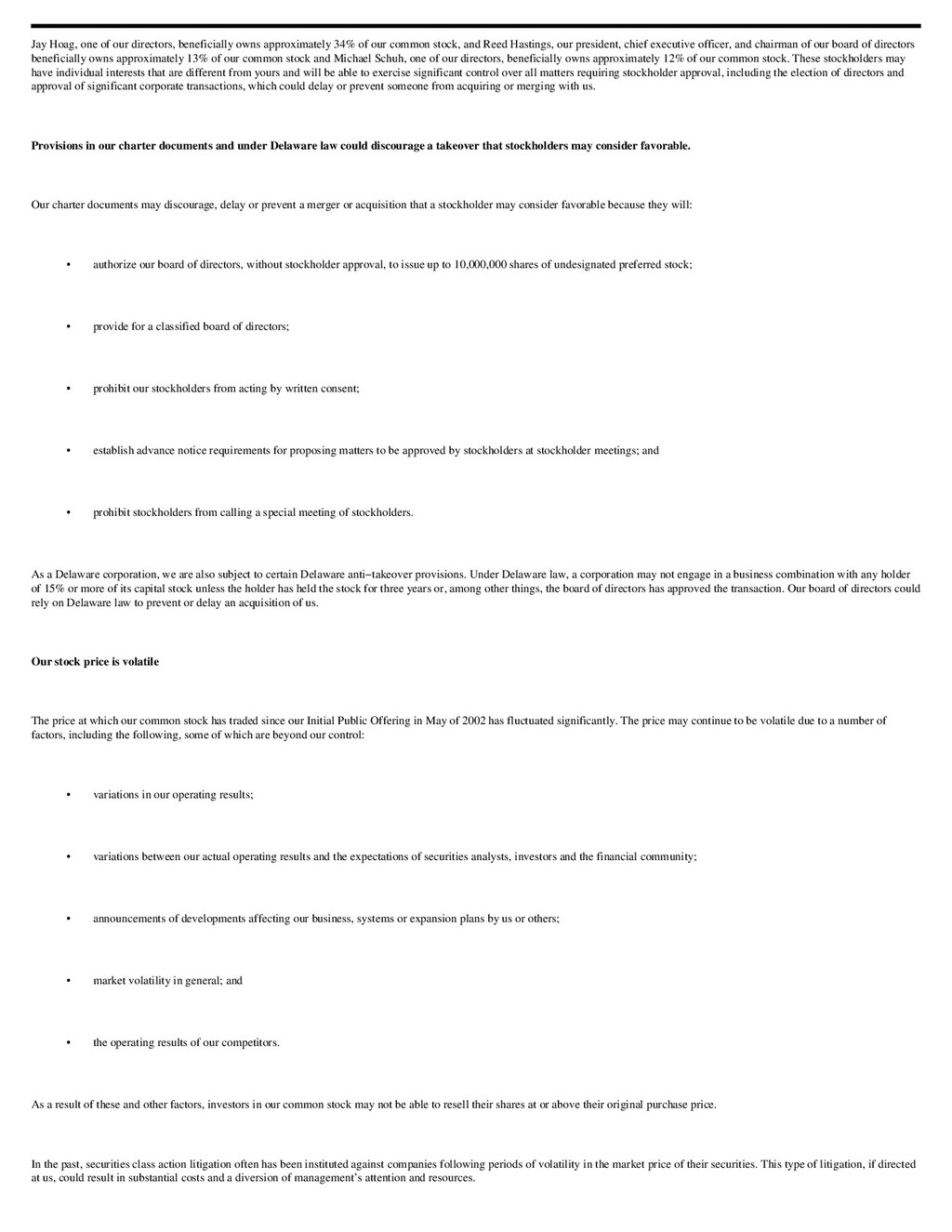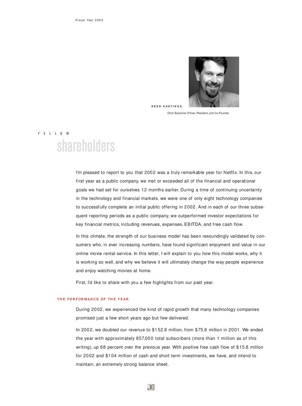 (in thousands, except share data) Convertible Preferred Stock Common Stock Additional Paid−in Capital Deferred Stock− Based Compen− sation Accumulated Other Compre− hensive Income Compre− hensive Loss Accum− ulated Deficit Total Stock− holders' (Deficit) Equity Shares Amount Shares Amount Balances as of January 1, 2000 4,444,545 $ 4 2,074,160 $ 2 $ 16,092 $ (6,841) $ — $ (41,285) $ (32,028) Exercise of options and issuance of restricted stock — — 81,003 — 422 — — — 422 Repurchase of restricted stock — — (26,653) — (141) — — — (141) Issuance of common stock in exchange for services rendered — — 7,258 — 306 — — — 306 Warrants issued in connection with operating lease — — — — 216 — — — 216 Warrants issued in connection with services rendered — — — — 285 — — — 285 Warrants issued in connection with debt financing — — — — 105 — — — 105 Subscribed Series F non−voting preferred stock — — — — 6,128 — — — 6,128 Deferred stock−based compensation, net — — — — 11,228 (11,228) — — — Stock−based compensation expense — — — — — 8,803 — — 8,803 Net loss — — — — — — — $ (57,363) (57,363) (57,363) Appreciation (depreciation) in value of available−for−sale securities — — — — — — — — — — Comprehensive loss — — — — — — — $ (57,363) — — Balances as of December 31, 2000 4,444,545 4 2,135,768 2 34,641 (9,266) — (98,648) (73,267) Exercise of options — — 30,046 — 125 — — — 125 Repurchase of restricted stock — — (5,625) — (12) — — — (12) Issuance of common stock in exchange for services rendered — — 1,666 — 10 — — — 10 Warrants issued in connection with subordinated notes payable — — — — 10,884 — — — 10,884 Warrants issued in connection with capital lease obligation — — — — 172 — — — 172 Warrants issued in exchange for services rendered — — — — 18 — — — 18 Issuance of Series F non−voting preferred stock 1,712,954 2 — — 4,279 — — — 4,281 Subscribed Series F non−voting preferred stock — — — — 217 — — — 217 Deferred stock−based compensation, net — — — — 2,145 (2,145) — — — Stock−based compensation expense — — — — — 5,686 — — 5,686 Net loss — — — — — — — $ (38,618) (38,618) (38,618) Appreciation (depreciation) in value of available−for−sale securities — — — — — — — — — — Comprehensive loss — — — — — — — $ (38,618) — — Balances as of December 31, 2001 6,157,499 6 2,161,855 2 52,479 (5,725) — (137,266) (90,504) Exercise of options — — 438,838 — 1,287 — — — 1,287 Issuance of common stock under Employee Stock Purchase Plan — — 47,746 — 363 — — — 363 Repurchase of restricted stock — — (1,729) — (6) — — — (6) Issuance of Series F non−voting preferred stock 3,492,737 4 — — 1,314 — — — 1,318 Issuance of common stock, net of costs — — 6,328,084 6 86,208 — — — 86,214 Conversion of preferred stock into common stock (9,650,236) (10) 3,216,740 3 7 — — — — Conversion of redeemable convertible preferred stock into common stock — — 9,659,700 10 101,820 — — — 101,830 Issuance of common stock upon exercise of warrants — — 594,561 1 195 — — — 196 Deferred stock−based compensation, net — — — — 15,505 (15,505) — — — Stock−based compensation expense — — — — — 9,831 — — 9,831 Net loss — — — — — — — $ (21,947) (21,947) (21,947) Appreciation (depreciation) in value of available−for−sale securities — — — — — — 774 774 — 774 Comprehensive loss — — — — — — — $ (21,173) — — Balances as of December 31, 2002 — $ — 22,445,795 $ 22 $ 259,172 $ (11,399) $ 774 $ (159,213) $ 89,356 See accompanying notes to financial statements. F−5