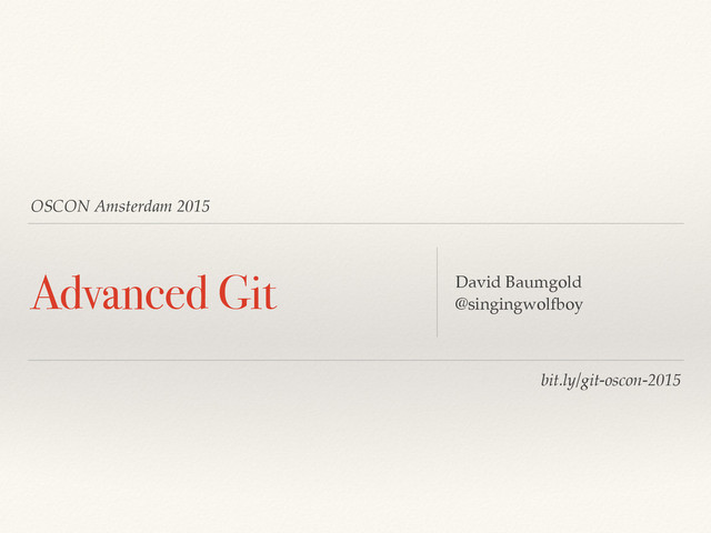 Note that this presentation is almost (but not quite) identical to https://speakerdeck.com/singingwolfboy/advanced-git
