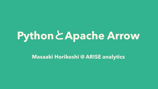 PythonͱApache Arrow Masaaki Horikoshi @ ARISE analytics