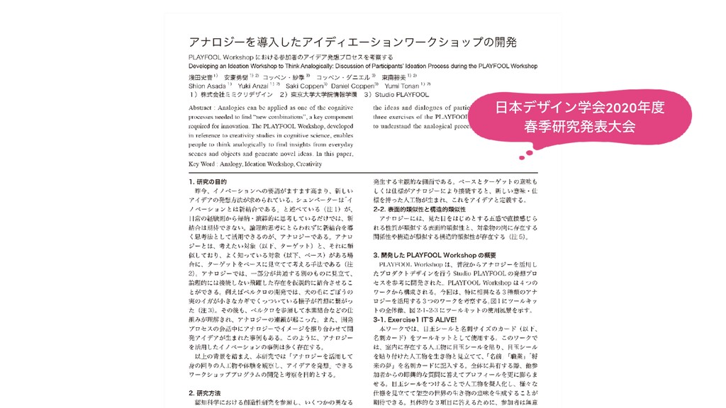 Analogies can be applied as one of the cognitive processes needed to find “new combinations”, a key component required for innovation. The PLAYFOOL Workshop, developed in reference to creativity studies in cognitive science, enables people to think analogically to find insights from everyday scenes and objects and generate novel ideas. In this paper, the ideas and dialogues of participants produced during three exercises of the PLAYFOOL Workshop are discussed to understand the analogical processes which it stimulates.