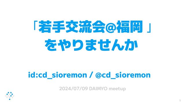 「若手交流会@福岡 」 をやりませんか id:cd_sioremon / @cd_sioremon 2024/07/09 DAIMYO meetup 1