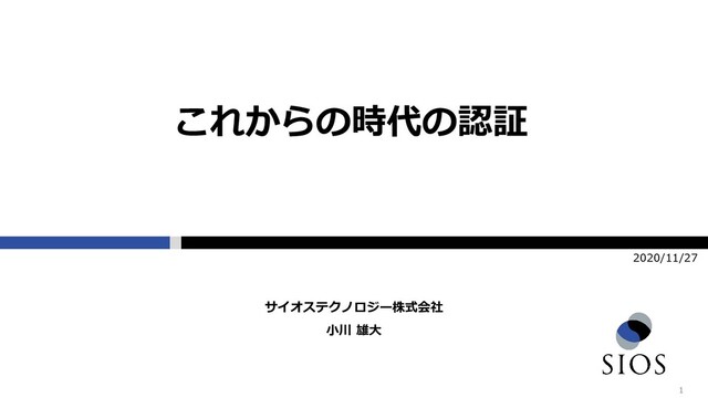 1 2020/11/27 小川 雄大 サイオステクノロジー株式会社 これからの時代の認証