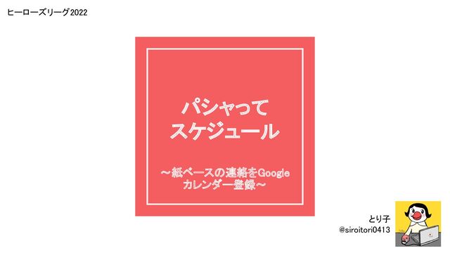 パシャって スケジュール ~紙ベースの連絡をGoogle カレンダー登録~ とり子 @siroitori0413 ヒーローズリーグ2022