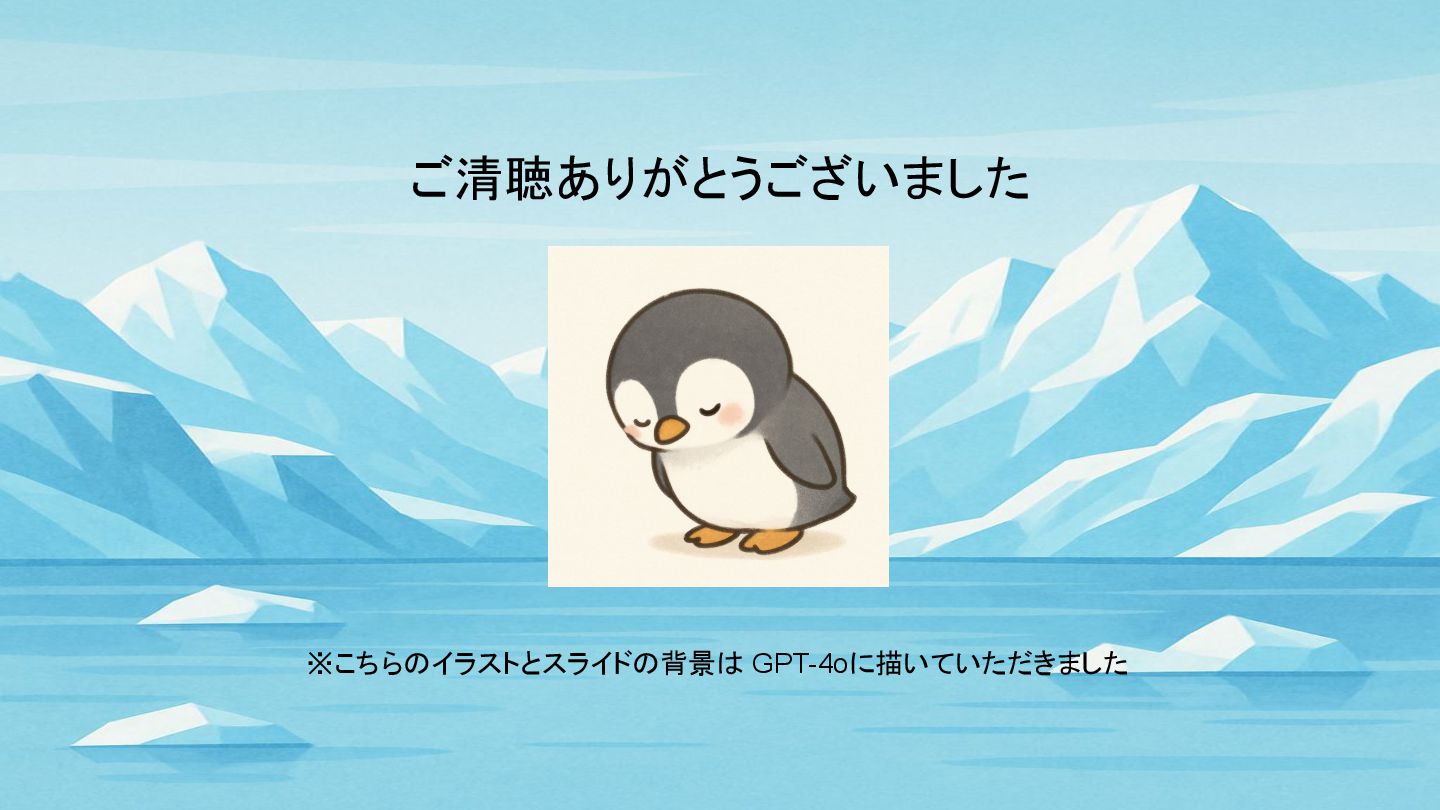 ご清聴ありがとうございました ※こちらのイラストとスライドの背景は GPT-4oに描いていただきました