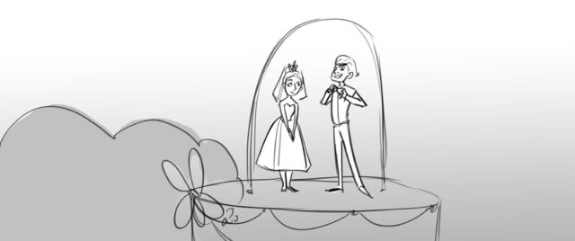 A bride cake topper must navigate a bakery obstacle course to arrive at her wedding on time.