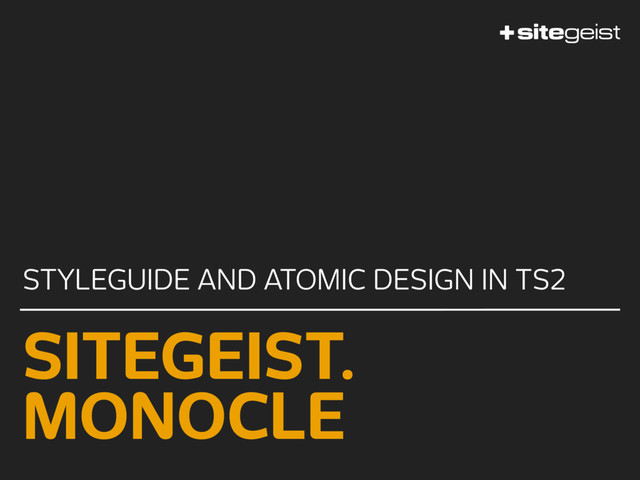 code … @styleguide annotations » Template-engine agnoistic » Coding-style agnoistic » Works very well with atomic design + BEWARE OF MOVING GROUND + ATTENTION sitegeist/Sitegeist.Monocle