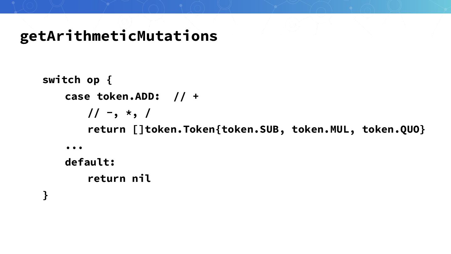 mutateBinaryExpr mutations := m.getArithmeticMutations(expr.Op) mutants := make([]Mutant, 0, len(mutations)) for