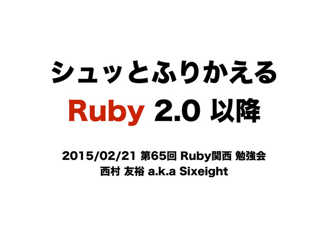 "!" end end end ! class Person using Bangable ! def greet(name) puts "Hi #{name}".! end end ! Person.new.greet("cat") #=> Hi cat! ! puts "Hi dog".! #=> false w &YQFSJNFOUBM͕औΕͨʂ ! w ΫϥεϞδϡʔϧͷε ίʔϓʹ༗ޮʹ w FWBMͷରԠೖΒͳ ͔ͬͨ