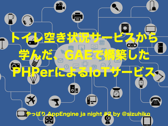 トイレの空き状況を見ることはIoT入門として、たくさんの記事やサービスとして実現されてきました。 このたび toiletevolution.space として、オープンソースでサービスを公開しました。 構想から1年半を要したこのサービス。様々なアーキテクチャを検討する中で、 GAE上で動くAPIサーバーをSlim3で構築しました。 サービスを構築する上でGAEで工夫したところや学んだこと、現時点のトイレ空き状況サービスの課題と、今後のサービス展望について稲妻トーク(LT)します。