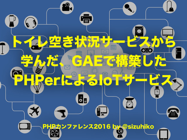 トイレの空き状況を見ることはIoT入門として、たくさんの記事やサービスとして実現されてきました。 / このたび toiletevolution.space として、オープンソースでサービスを公開しました。 / 構想から1年半を要したこのサービス。様々なアーキテクチャを検討する中で、 / GAE上で動くAPIサーバーをSlim3で構築しました。 / サービスを構築する上で学んだこと、現時点のトイレ空き状況サービスの課題と、今後のサービス展望について稲妻トーク(LT)します。