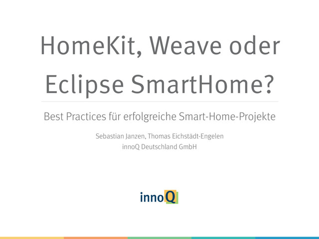 Noch immer hat sich keine der zahlreichen Smart-Home-Allianzen im Markt durchgesetzt. Diese Tatsache bremst viele Projekte aus oder führt mindestens zu großer Unsicherheit, auf welches Pferd zu setzen ist. Statt auf “die Großen” zu warten und sich ihren eigennützigen Regeln unterzuordnen, sollte lieber auf wirklich offene Smart-Home-Plattformen wie Eclipse SmartHome gesetzt werden. Dieser Talk berichtet über die Lessons Learned aus einigen unserer Smart-Home-Projekte mit Eclipse SmartHome. Er beleuchtet wichtige Konzepte, zeigt die richtigen Einstiegspunkte vom OSGi-Backend bis zum AngularJS-Frontend und gibt zahlreiche Tipps für das eigene kommerzielle Smart-Home-Projekt.