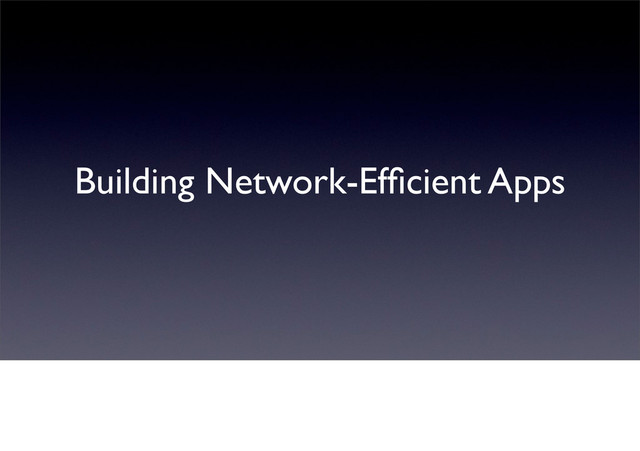 Architecting a mobile app that uses the network requires that we think about things differently than when we build software on the server. This presentation covers six main topics that can help you design apps that use the network more efficiently, resulting in a more pleasant user experience.