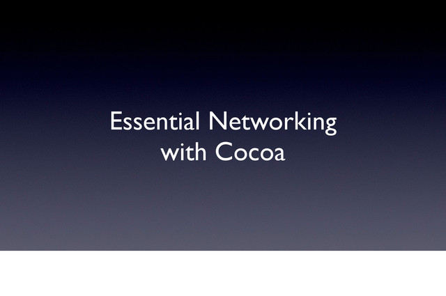 The first half is an introduction to networking on Cocoa, focusing on the features and use of NSURLConnection. The second half discusses strategies for designing apps that use the network to keep them fast and responsive.