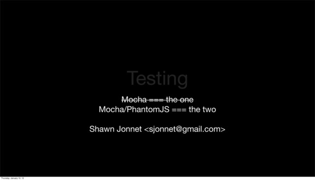 Testing Mocha === the one Mocha/PhantomJS === the two Shawn