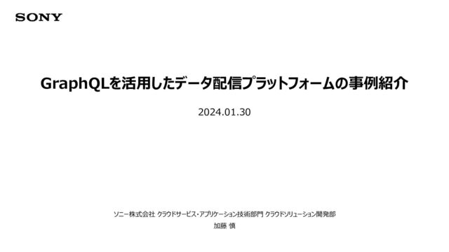 ソニーのホームエンタテインメント領域では、TVやサウンドバー、ヘッドホンをはじめとする様々な製品、それらに付随するアプリケーションを取り扱っています。我々はホームエンタテインメント領域の横断組織として、それらの製品・アプリに対してクラウドサービスを提供しています。この領域において頻繁に要求される機能の一つに、データ配信があります。従来は製品・アプリの案件ごとにそれぞれ個別にサービスを開発しており、サービス間連携やリソースの共通化など横断組織ならではの利点をうまく発揮することができていませんでした。本セッションでは、この問題を解決すべく開発した共通データ配信プラットフォームについて、そこで活用されているGraphQLという技術との関係について、お話しします。