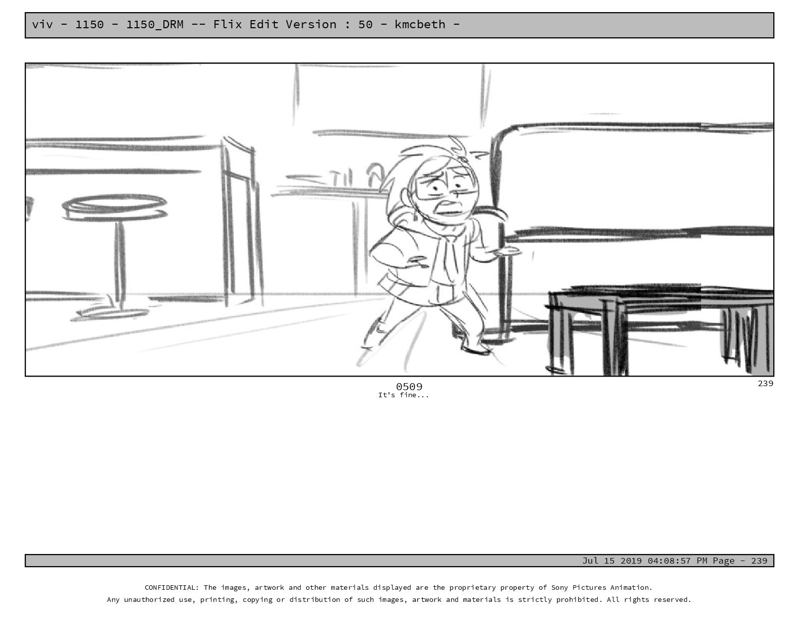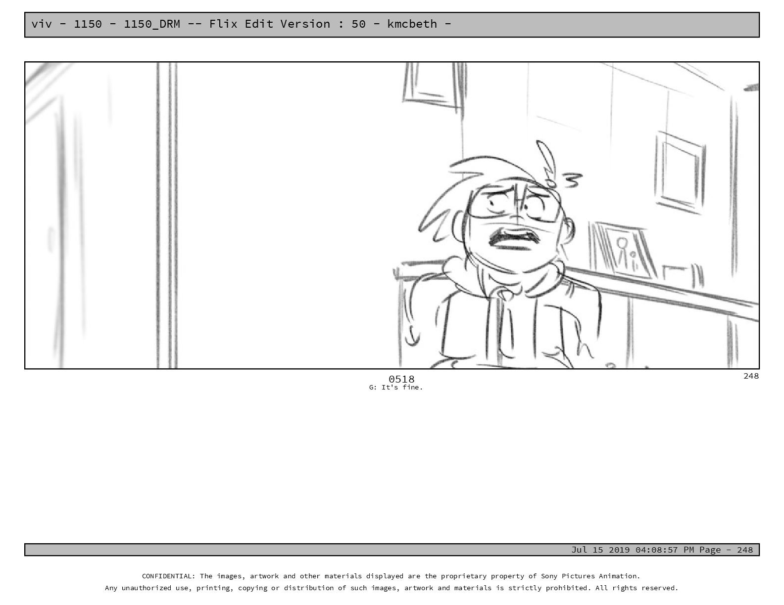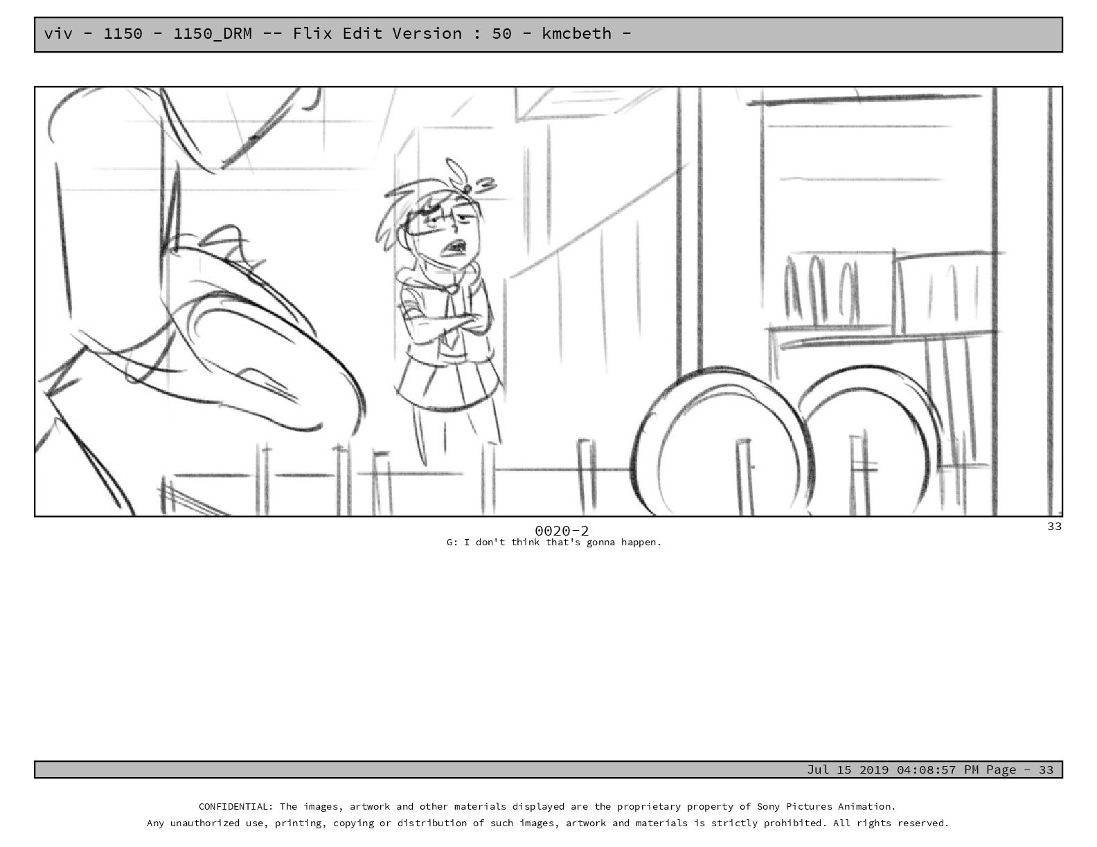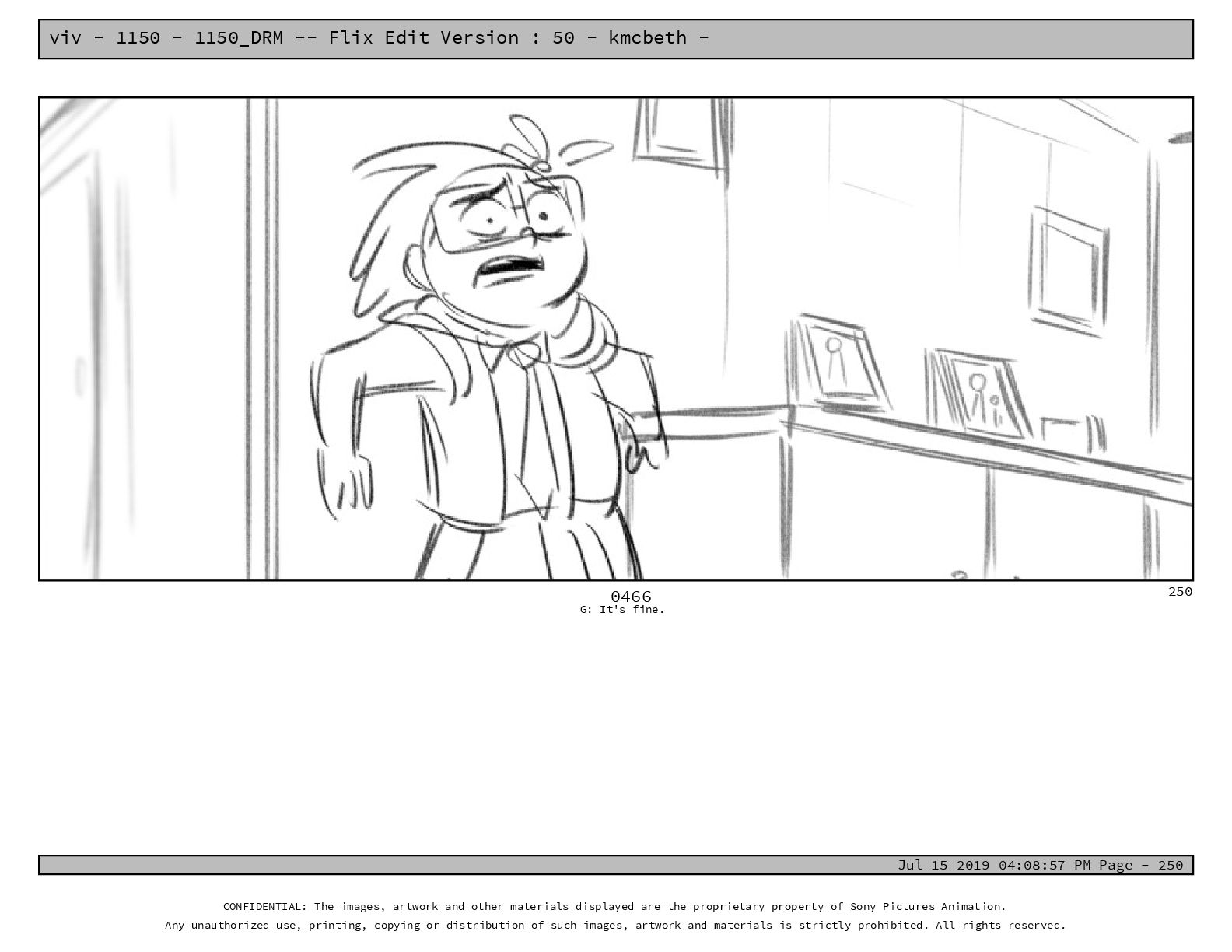 50 - kmcbeth - Jul 15 2019 04:08:57 PM Page - 105 CONFIDENTIAL: The images, artwork and other materials displayed are the proprietary property of Sony Pictures Animation. Any unauthorized use, printing, copying or distribution of such images, artwork and materials is strictly prohibited. All rights reserved. 0109-2 M: if you don’t at least try to get along with other kids, you’re going to be very lonely. 105