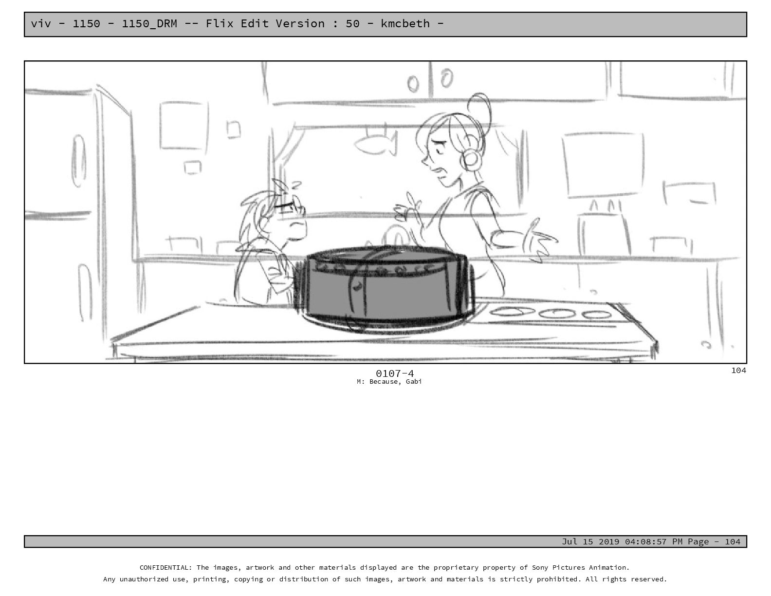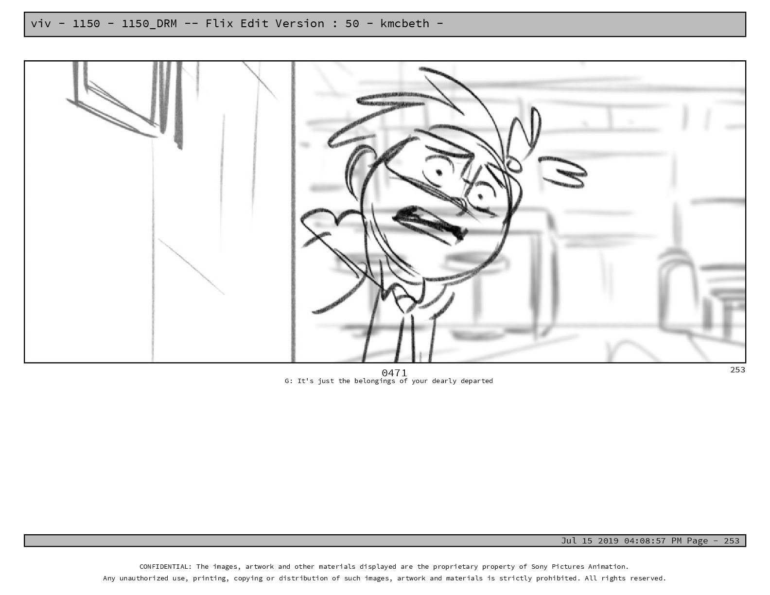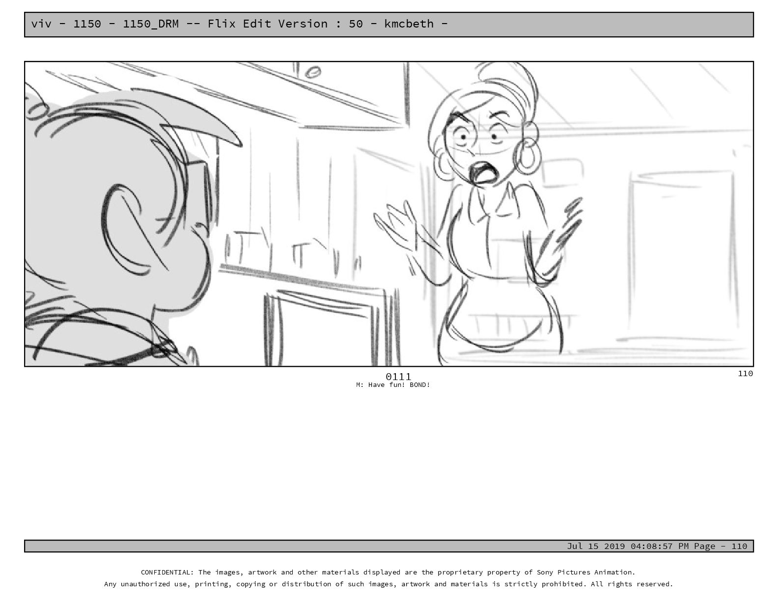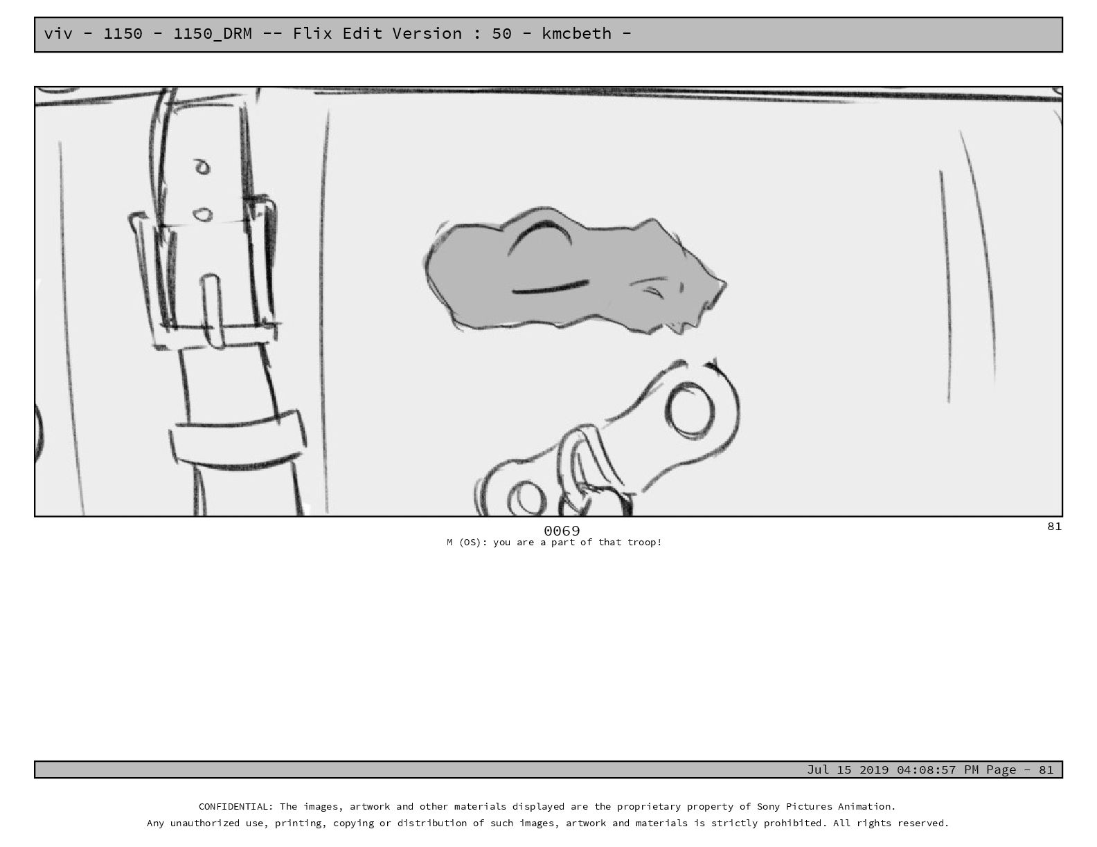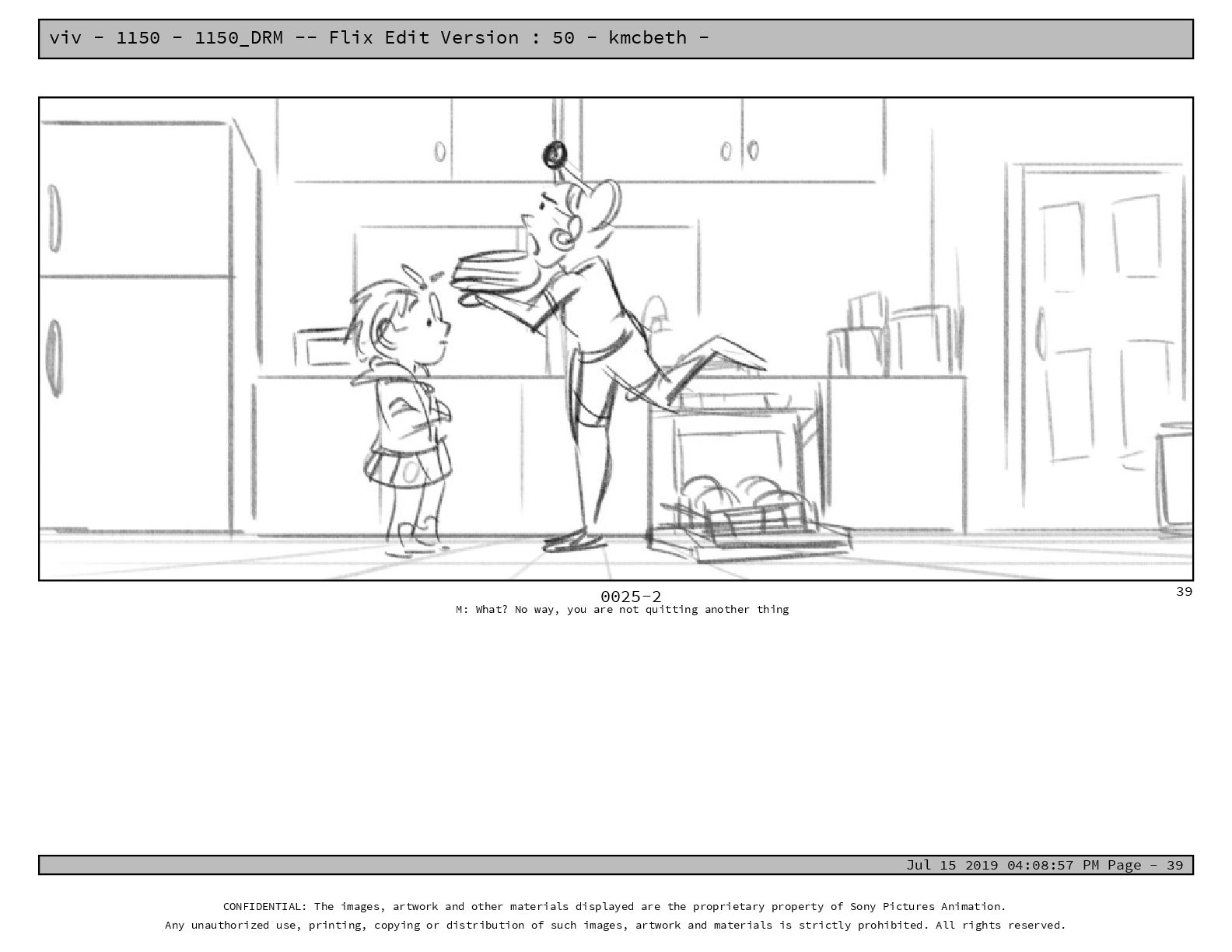 50 - kmcbeth - Jul 15 2019 04:08:57 PM Page - 105 CONFIDENTIAL: The images, artwork and other materials displayed are the proprietary property of Sony Pictures Animation. Any unauthorized use, printing, copying or distribution of such images, artwork and materials is strictly prohibited. All rights reserved. 0109-2 M: if you don’t at least try to get along with other kids, you’re going to be very lonely. 105