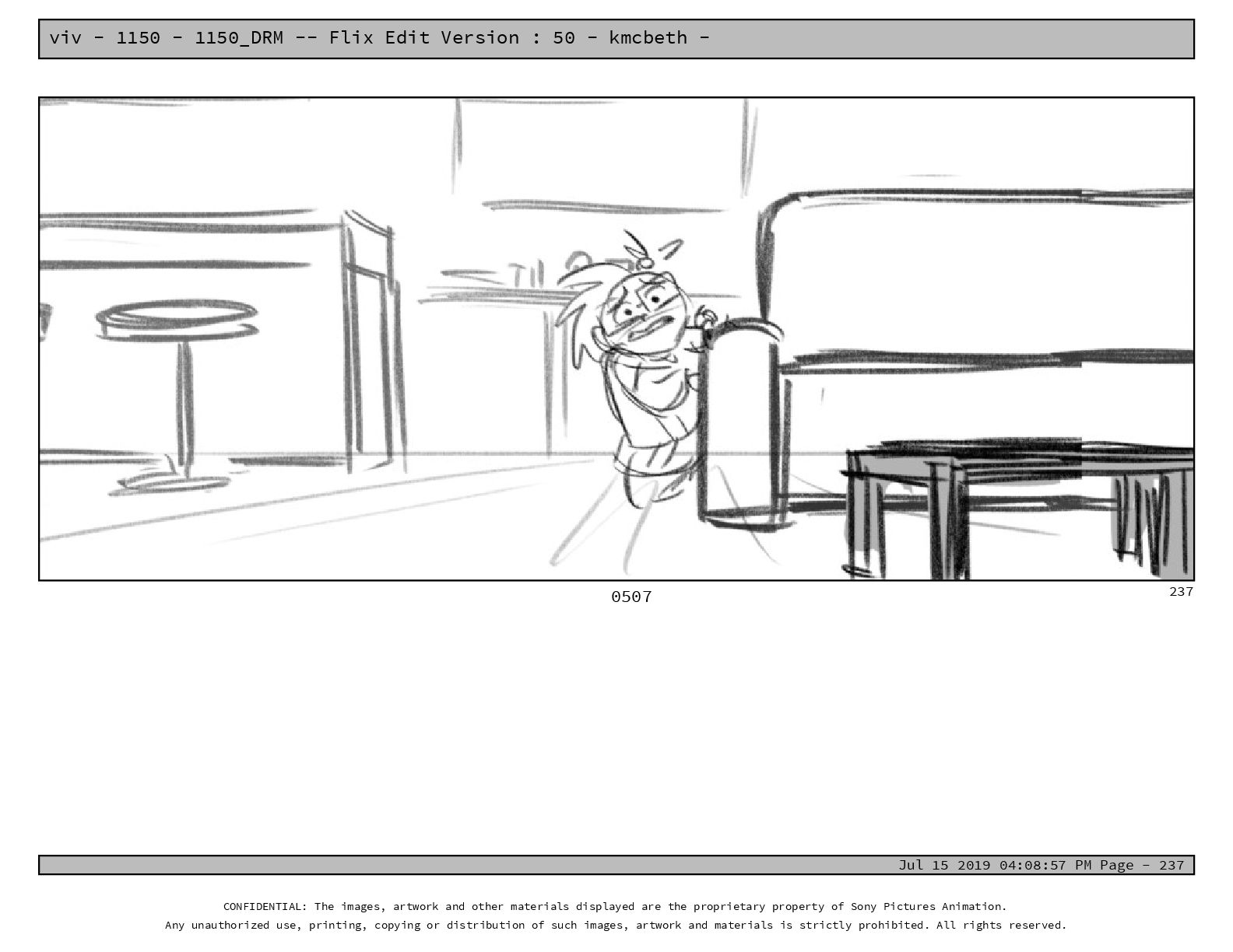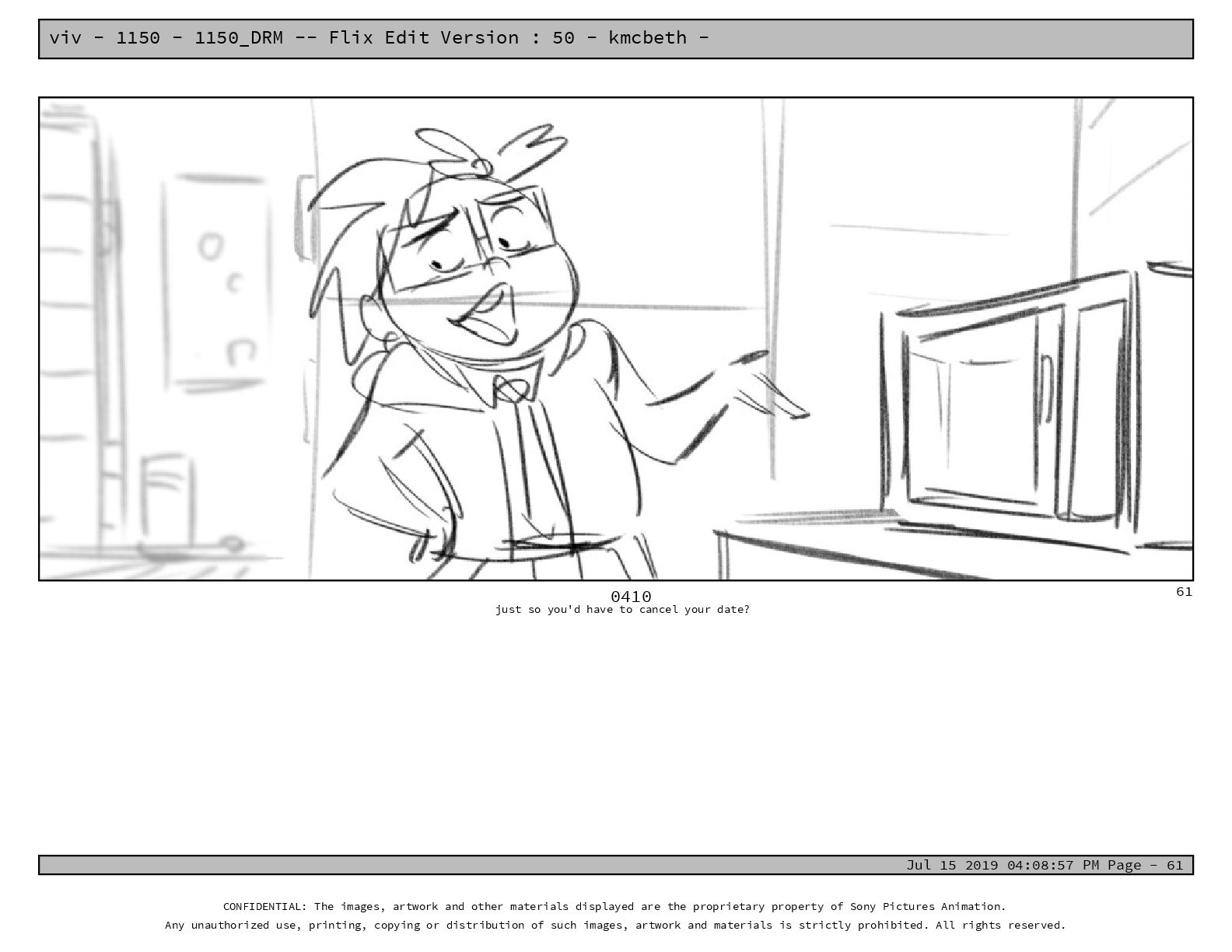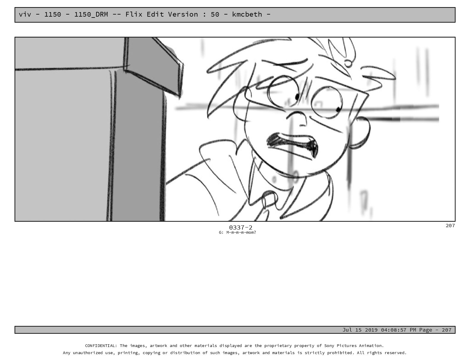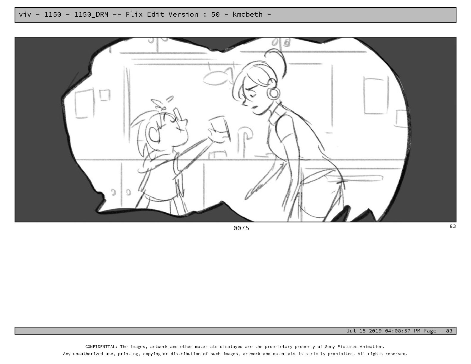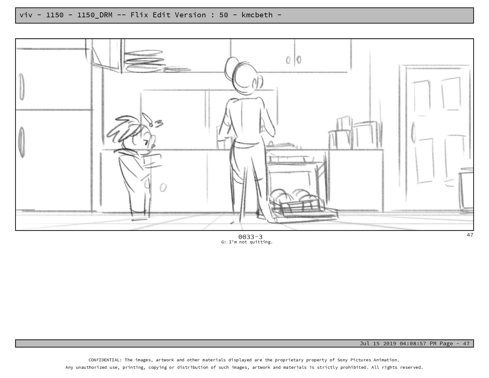 50 - kmcbeth - Jul 15 2019 04:08:57 PM Page - 105 CONFIDENTIAL: The images, artwork and other materials displayed are the proprietary property of Sony Pictures Animation. Any unauthorized use, printing, copying or distribution of such images, artwork and materials is strictly prohibited. All rights reserved. 0109-2 M: if you don’t at least try to get along with other kids, you’re going to be very lonely. 105