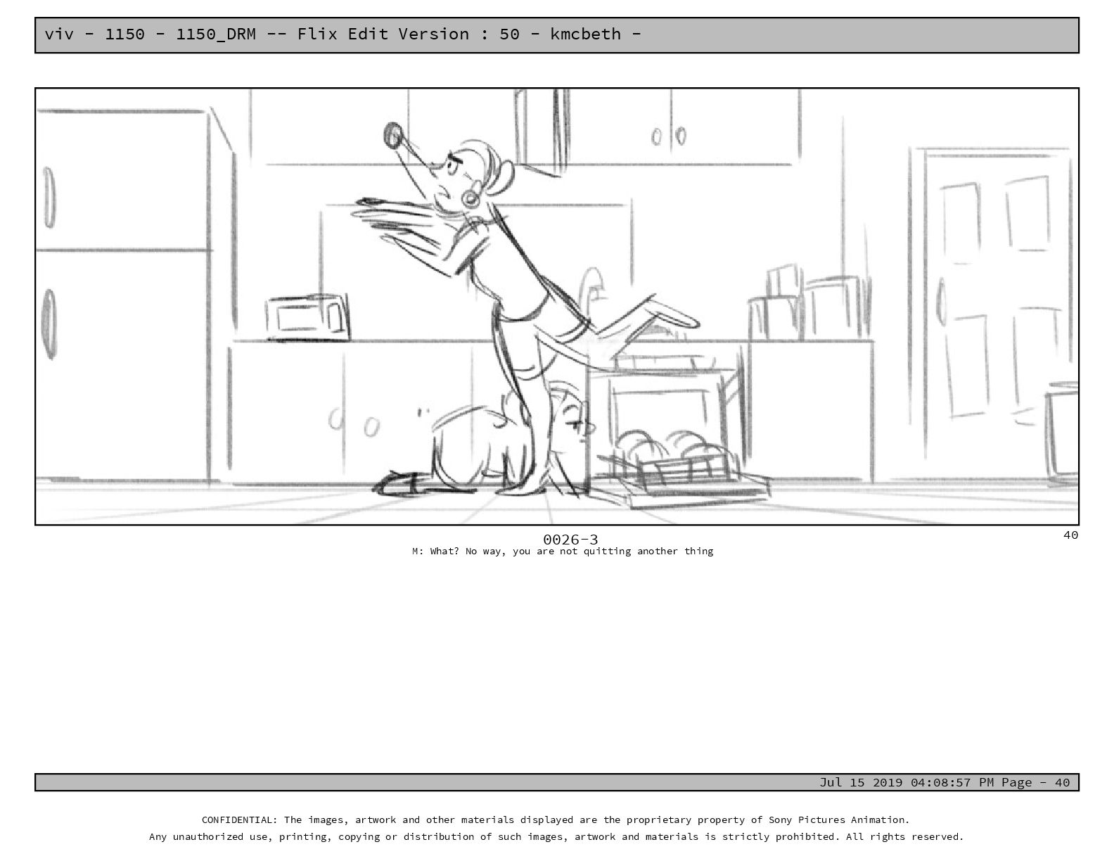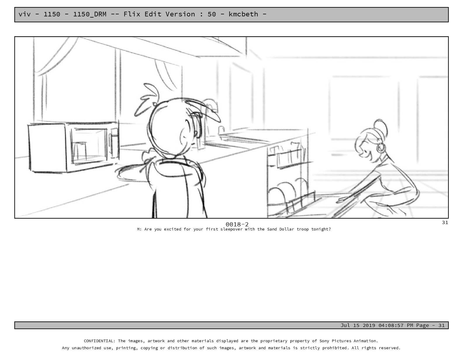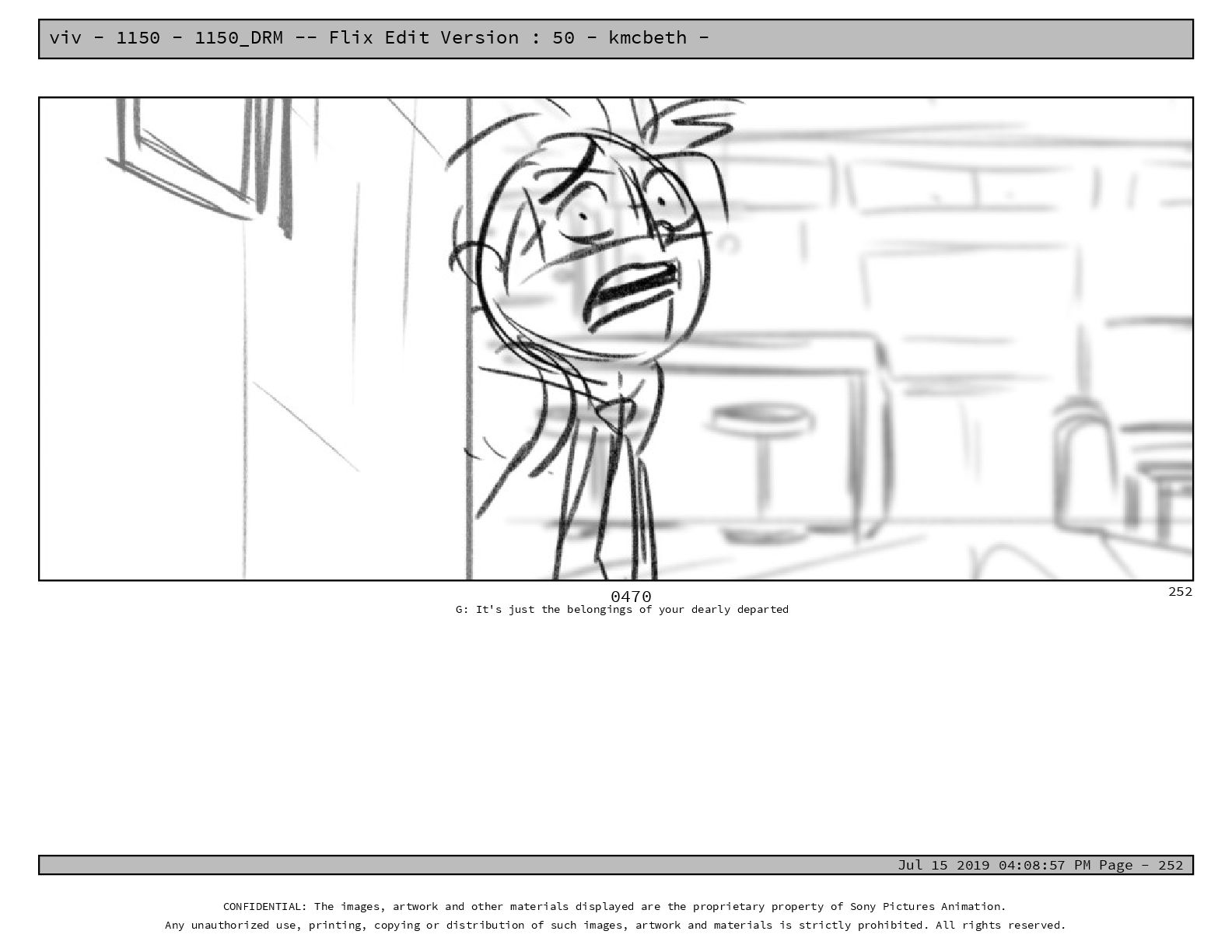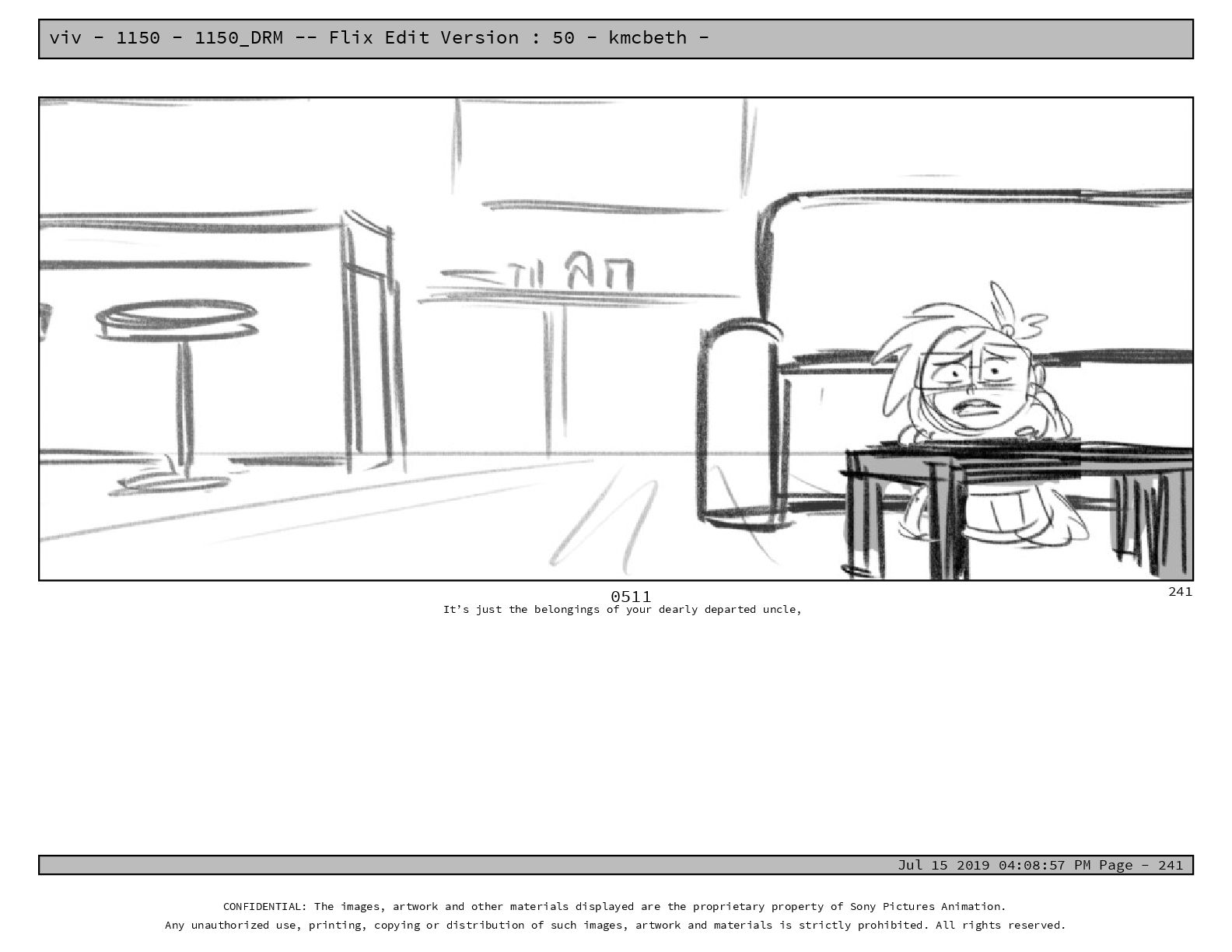 50 - kmcbeth - Jul 15 2019 04:08:57 PM Page - 105 CONFIDENTIAL: The images, artwork and other materials displayed are the proprietary property of Sony Pictures Animation. Any unauthorized use, printing, copying or distribution of such images, artwork and materials is strictly prohibited. All rights reserved. 0109-2 M: if you don’t at least try to get along with other kids, you’re going to be very lonely. 105