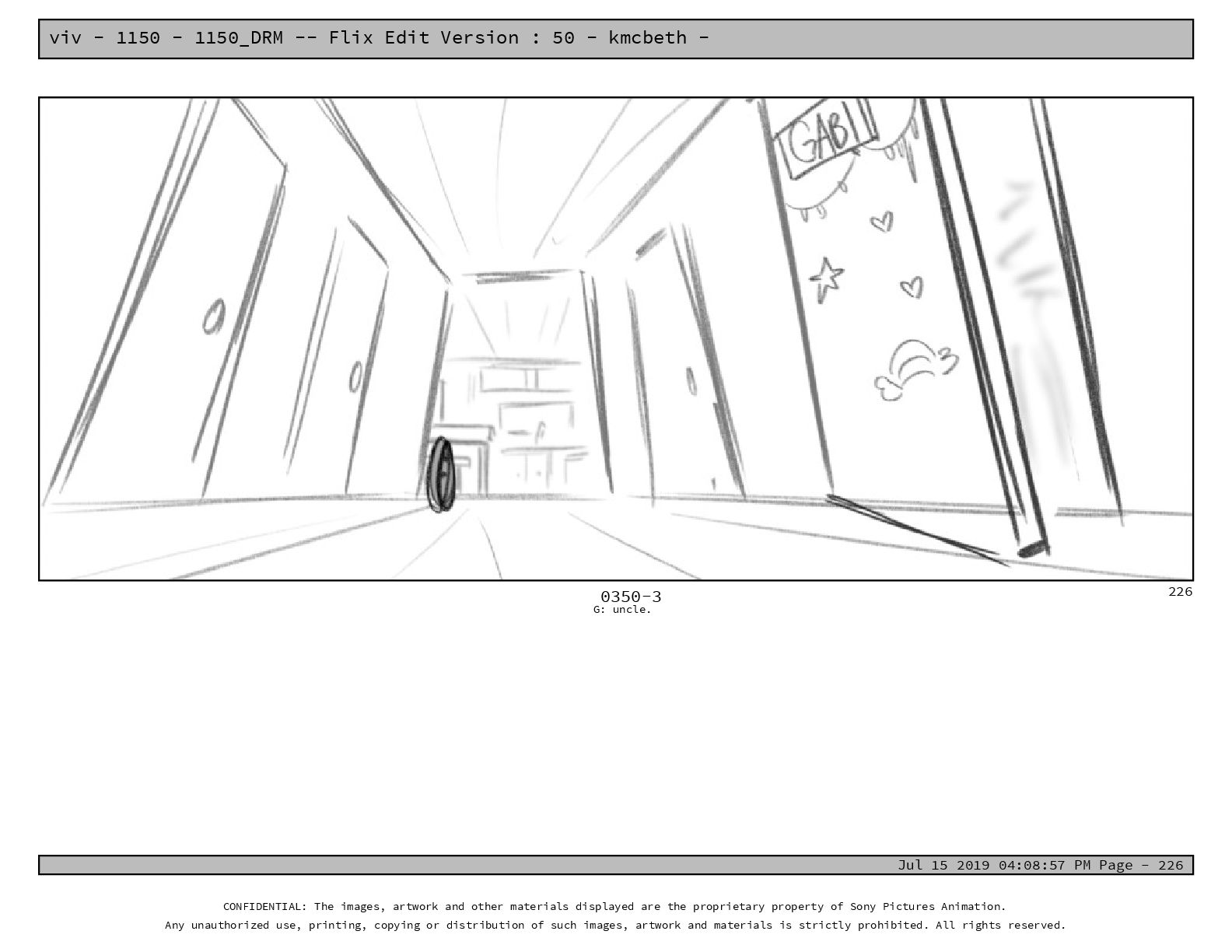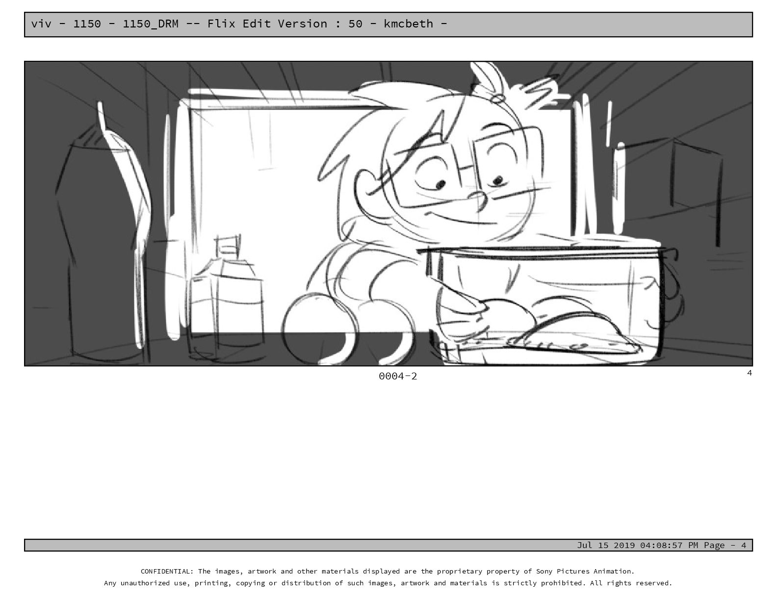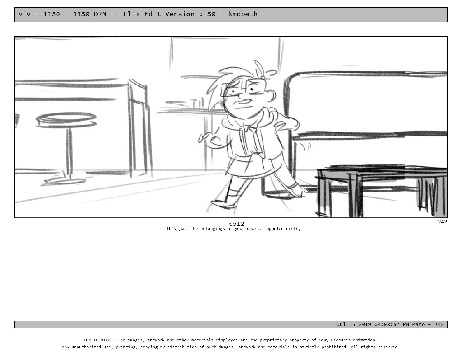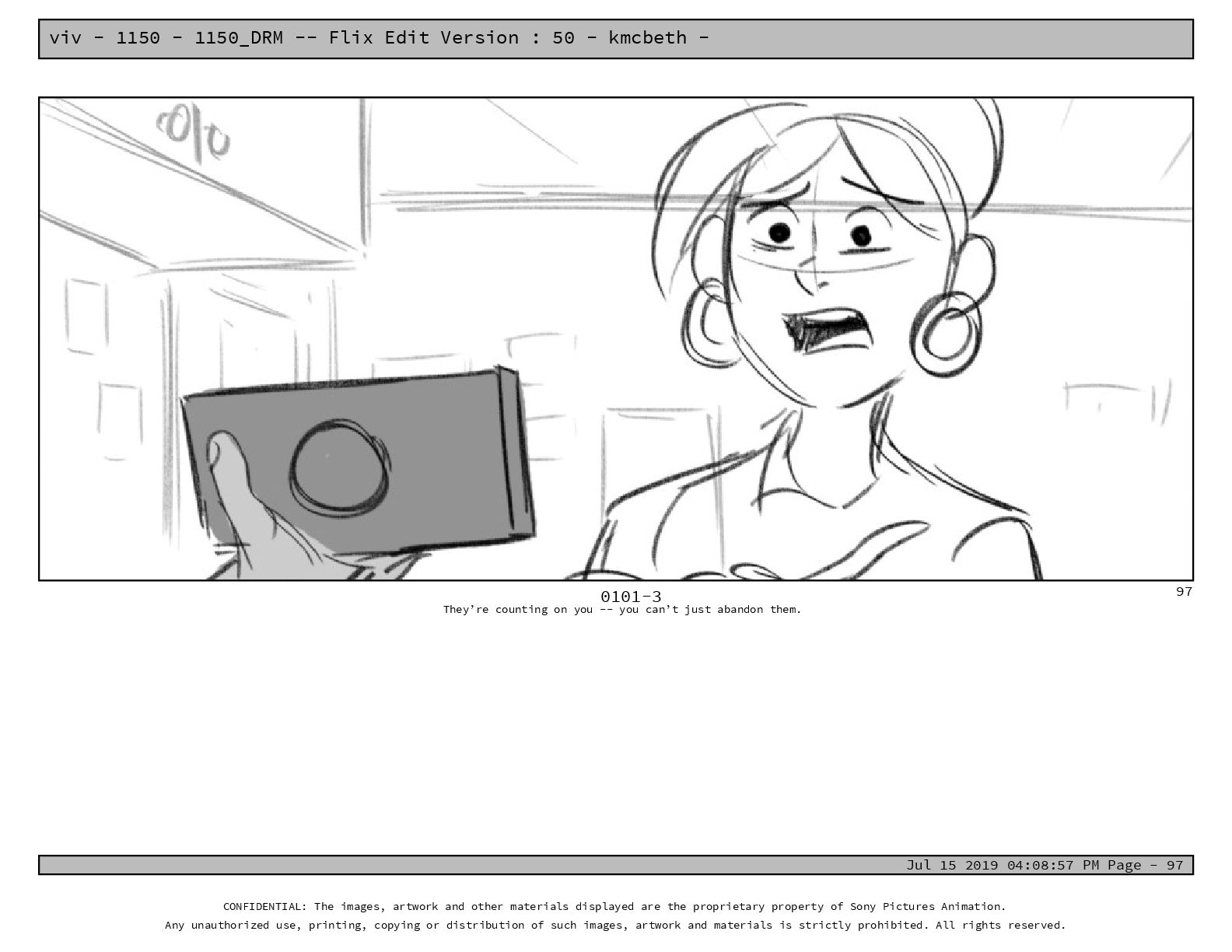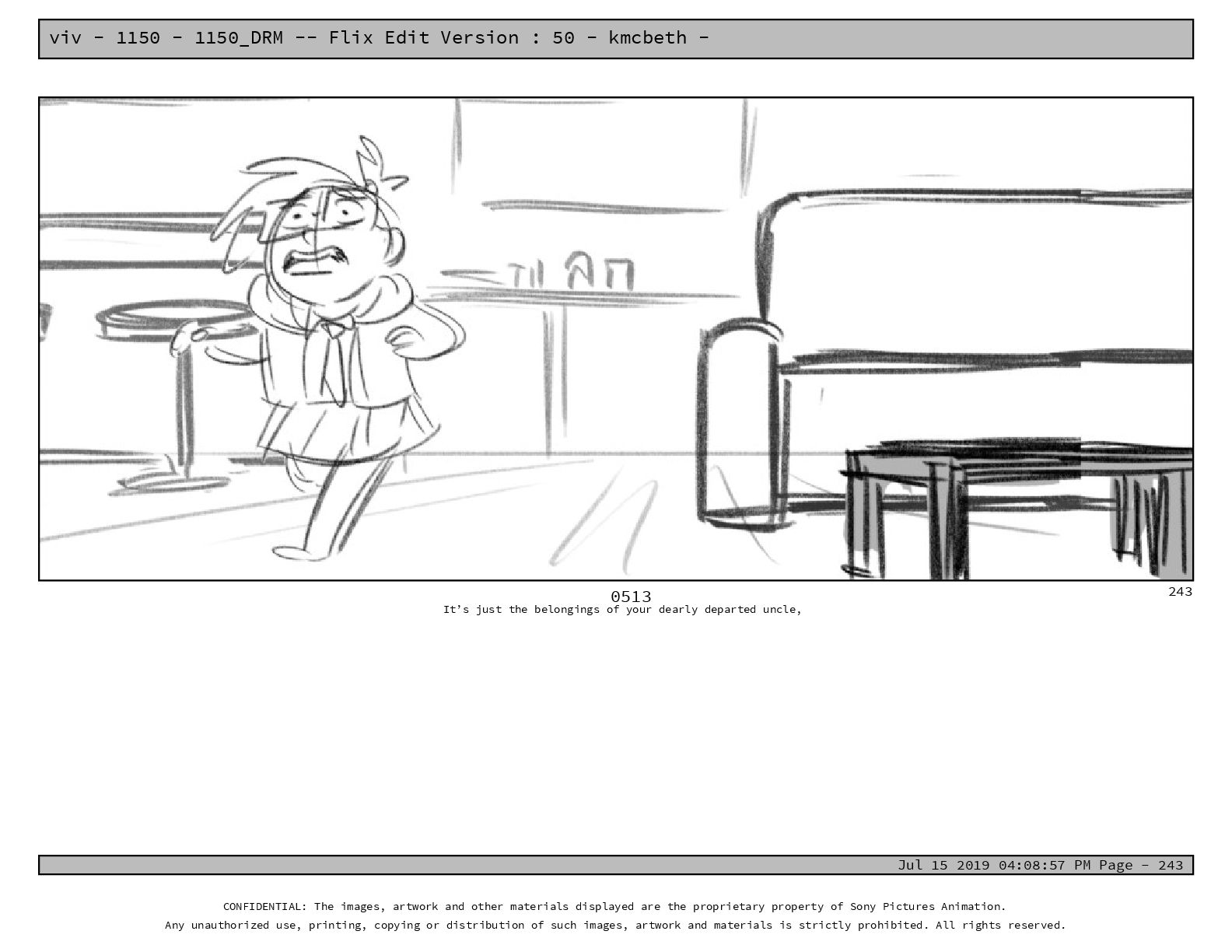 50 - kmcbeth - Jul 15 2019 04:08:57 PM Page - 105 CONFIDENTIAL: The images, artwork and other materials displayed are the proprietary property of Sony Pictures Animation. Any unauthorized use, printing, copying or distribution of such images, artwork and materials is strictly prohibited. All rights reserved. 0109-2 M: if you don’t at least try to get along with other kids, you’re going to be very lonely. 105