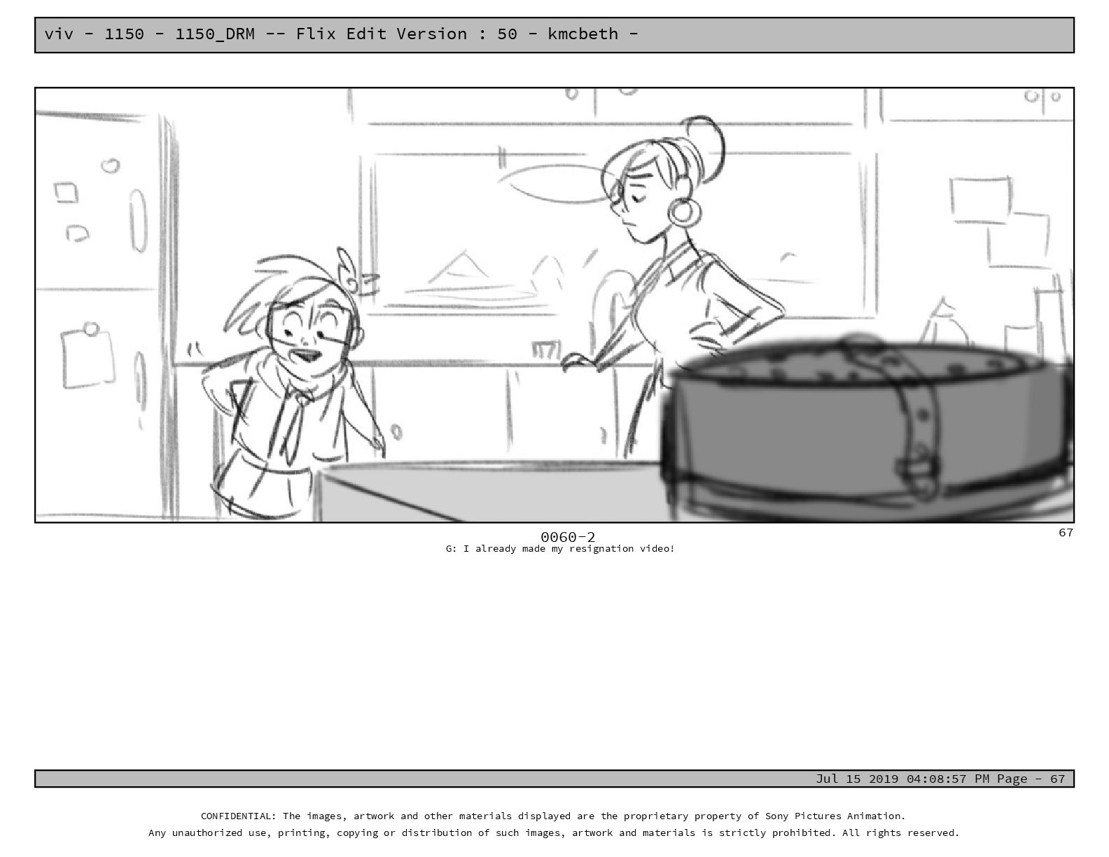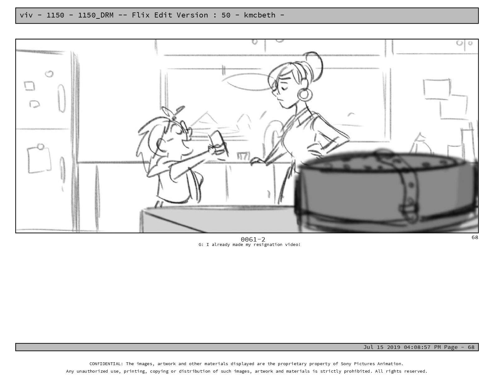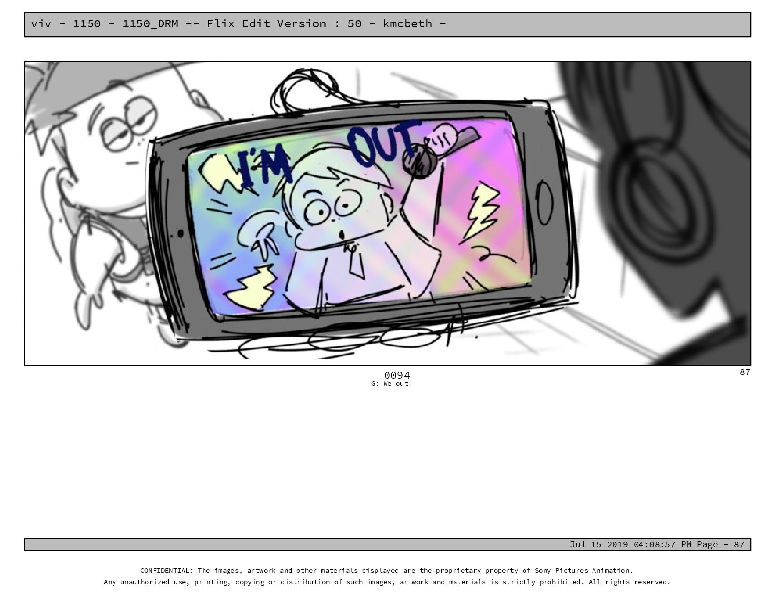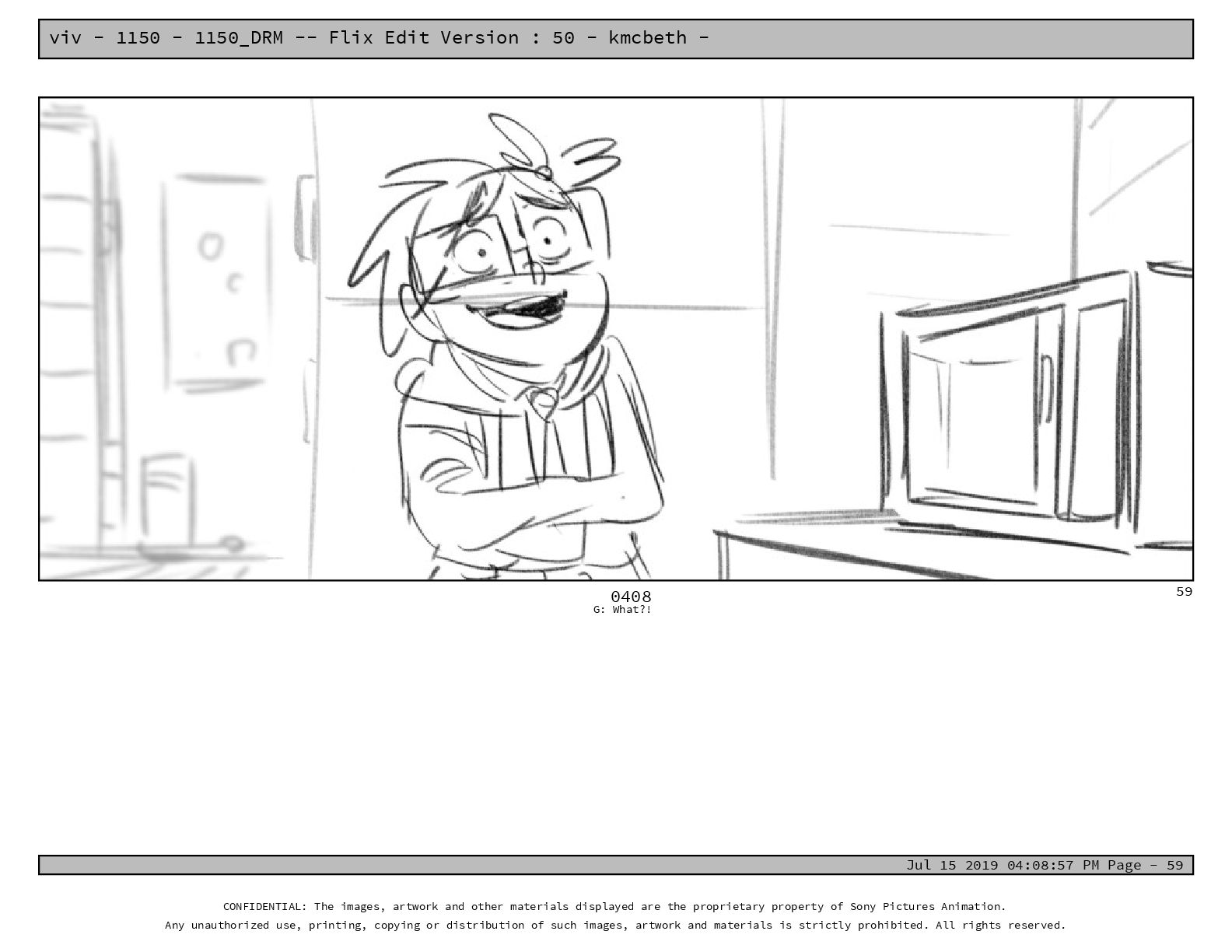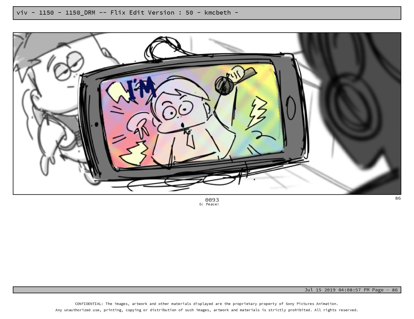 50 - kmcbeth - Jul 15 2019 04:08:57 PM Page - 105 CONFIDENTIAL: The images, artwork and other materials displayed are the proprietary property of Sony Pictures Animation. Any unauthorized use, printing, copying or distribution of such images, artwork and materials is strictly prohibited. All rights reserved. 0109-2 M: if you don’t at least try to get along with other kids, you’re going to be very lonely. 105