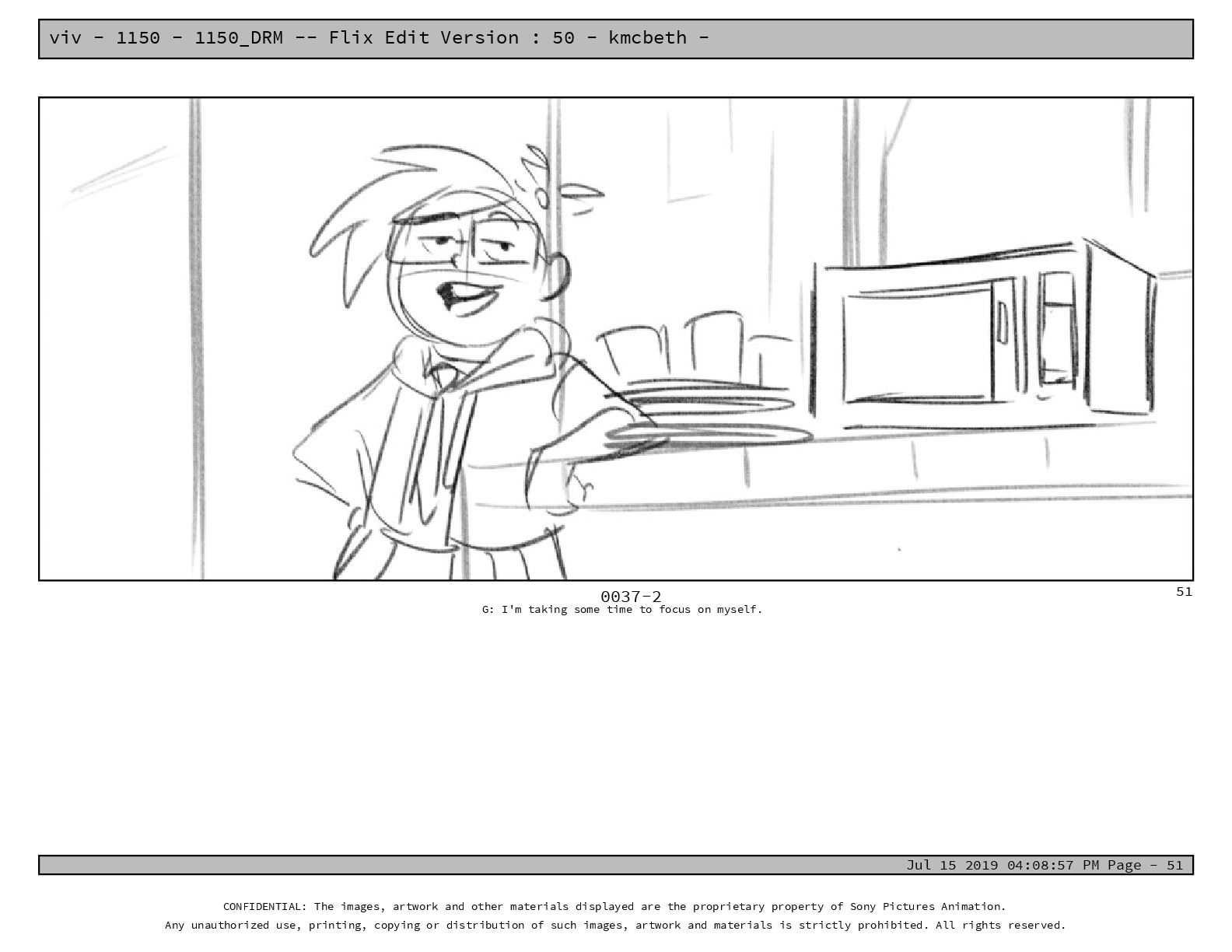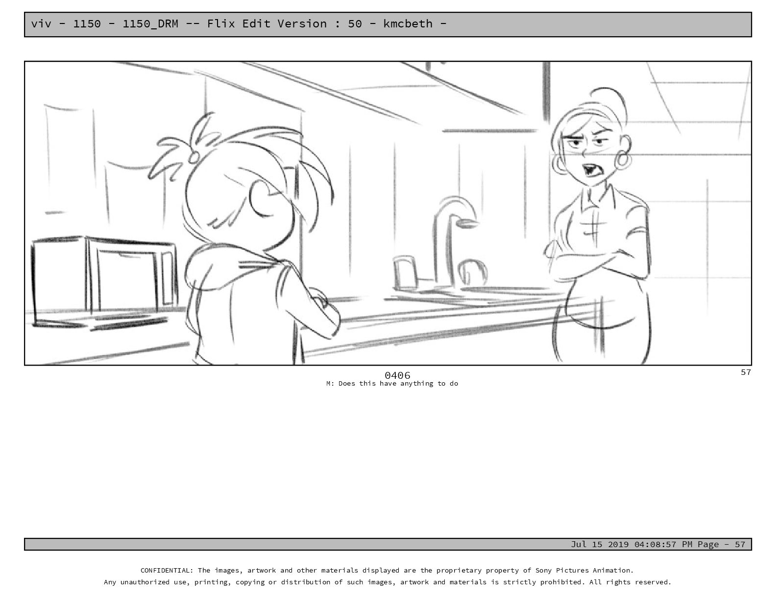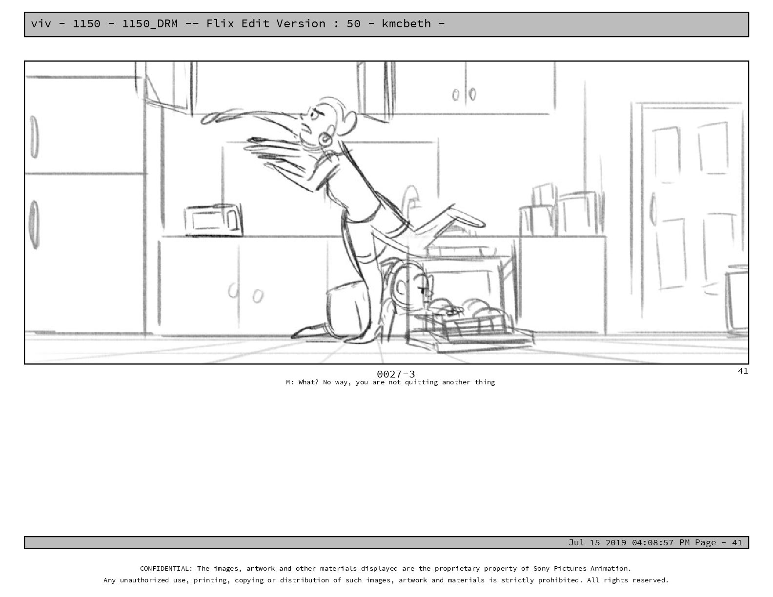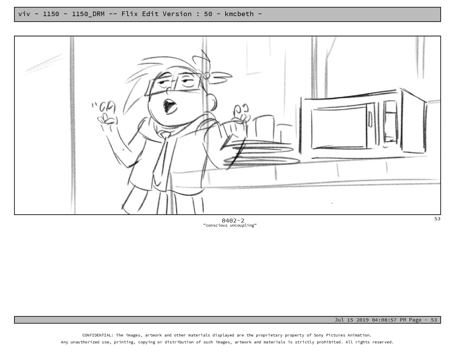 50 - kmcbeth - Jul 15 2019 04:08:57 PM Page - 105 CONFIDENTIAL: The images, artwork and other materials displayed are the proprietary property of Sony Pictures Animation. Any unauthorized use, printing, copying or distribution of such images, artwork and materials is strictly prohibited. All rights reserved. 0109-2 M: if you don’t at least try to get along with other kids, you’re going to be very lonely. 105
