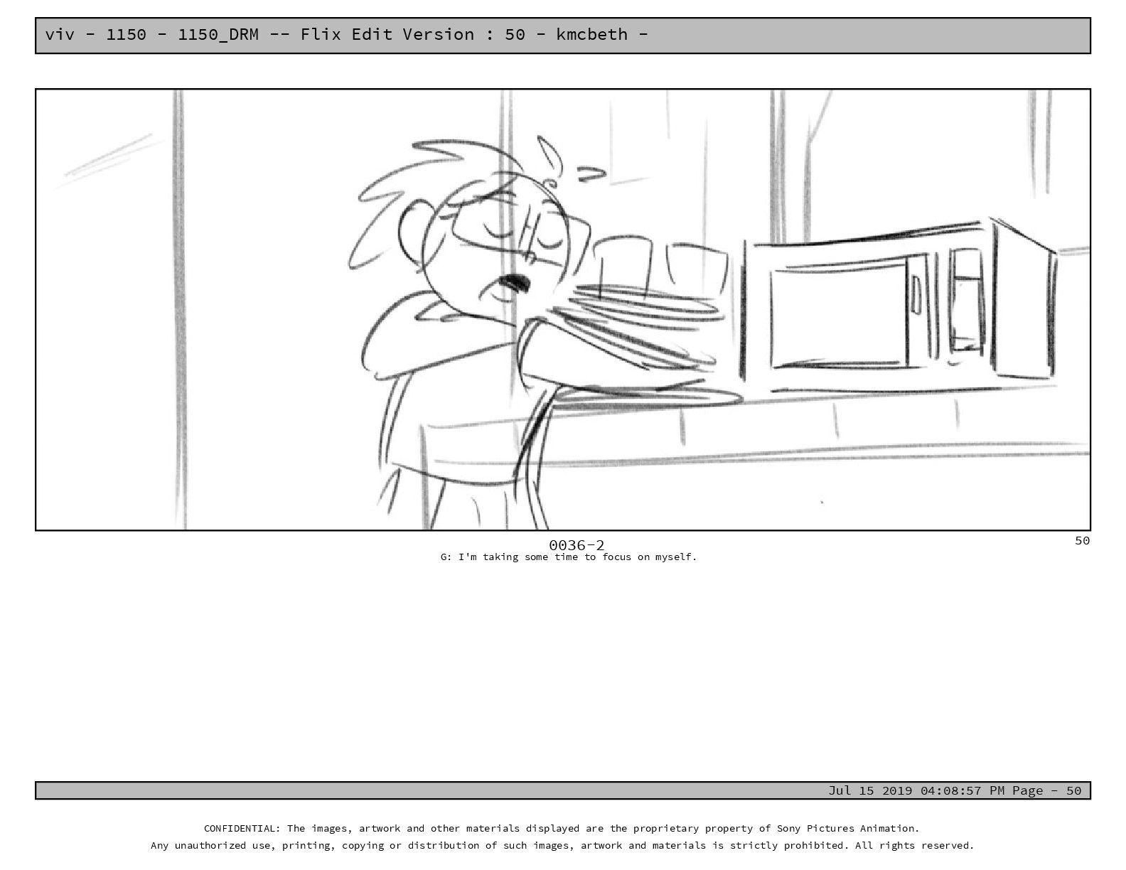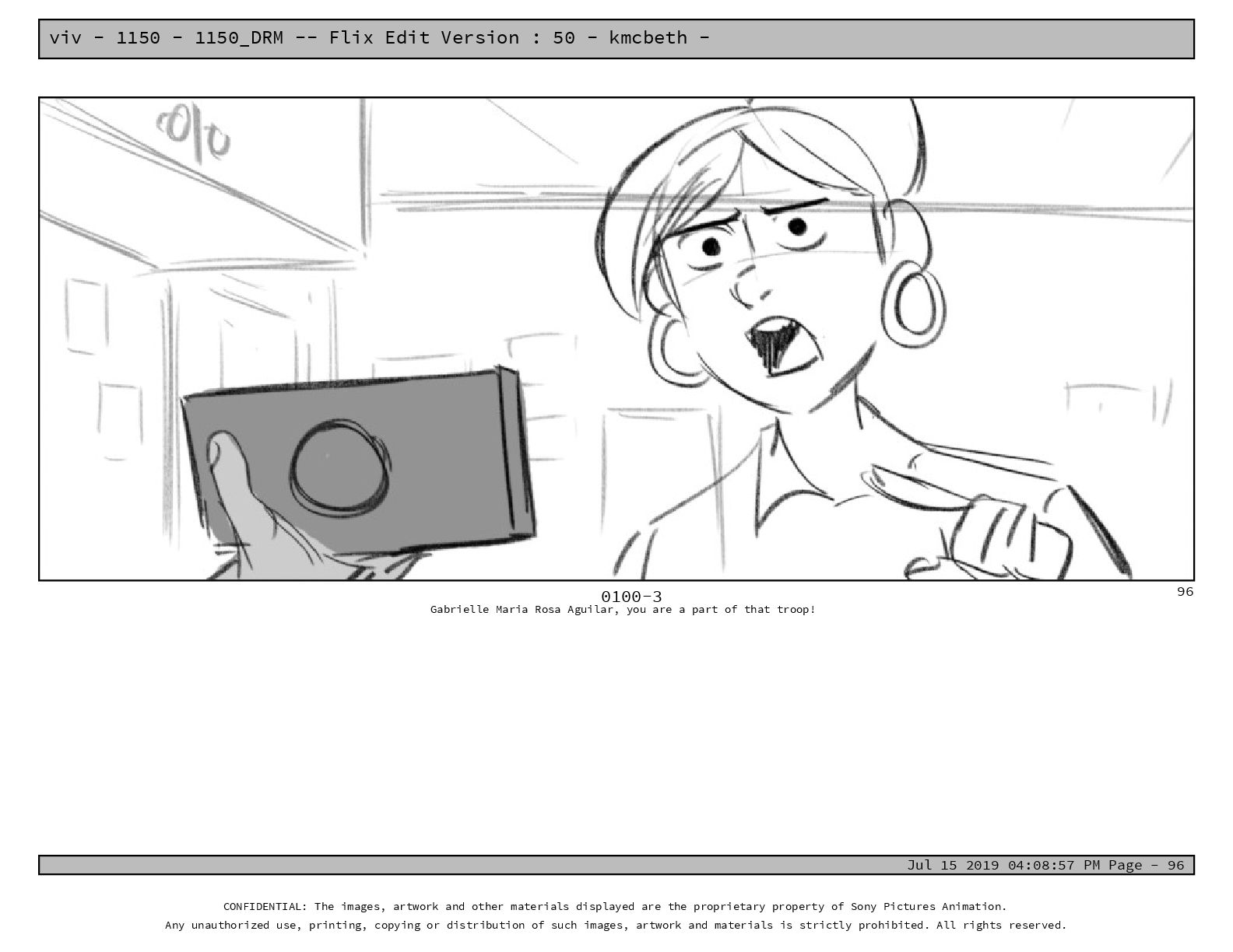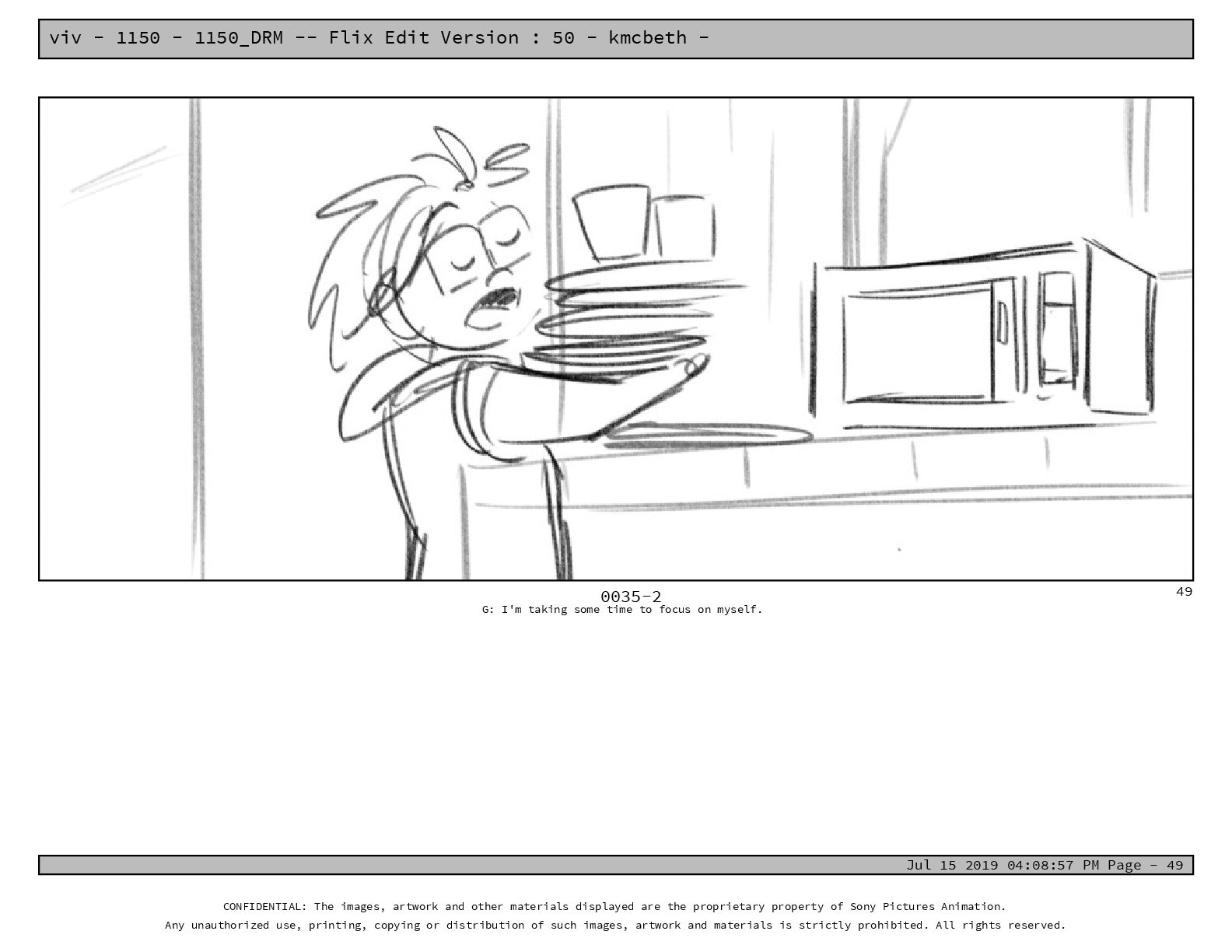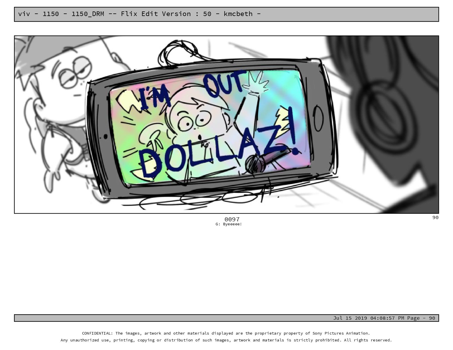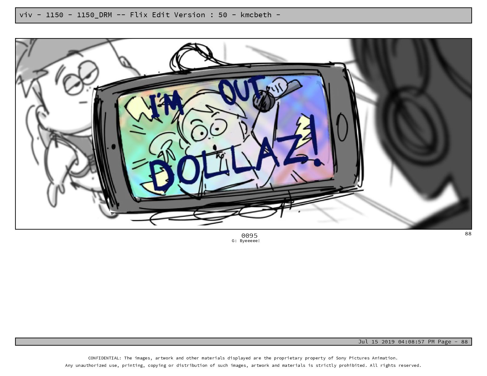 50 - kmcbeth - Jul 15 2019 04:08:57 PM Page - 105 CONFIDENTIAL: The images, artwork and other materials displayed are the proprietary property of Sony Pictures Animation. Any unauthorized use, printing, copying or distribution of such images, artwork and materials is strictly prohibited. All rights reserved. 0109-2 M: if you don’t at least try to get along with other kids, you’re going to be very lonely. 105