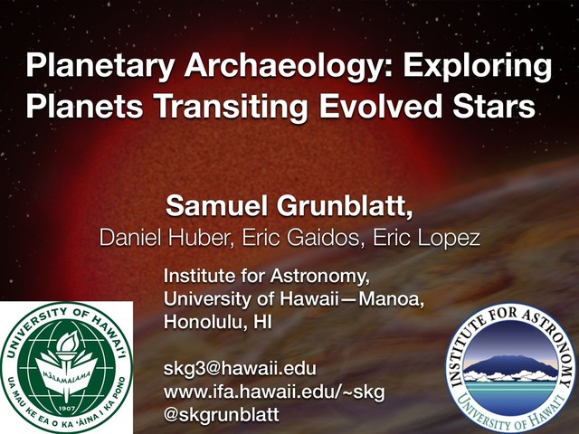 [email protected] @skgrunblatt ifa.hawaii.edu/~skg