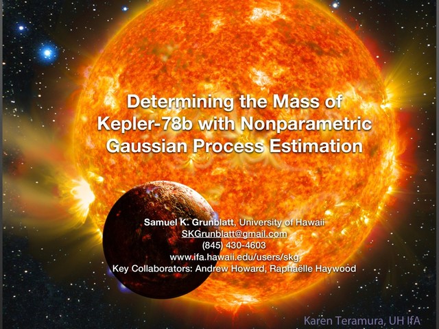 Samuel K. Grunblatt, University of Hawaii [email protected] (845) 430-4603 www.ifa.hawaii.edu/users/skg Key Collaborators: Andrew Howard, Raphaëlle Haywood