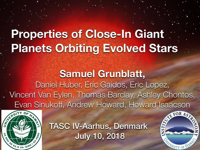 Daniel Huber, Eric Gaidos, Eric Lopez, Vincent Van Eylen, Thomas Barclay, Ashley Chontos, Evan Sinukoff, Andrew Howard, Howard Isaacson TASC IV-Aarhus, Denmark July 10, 2018