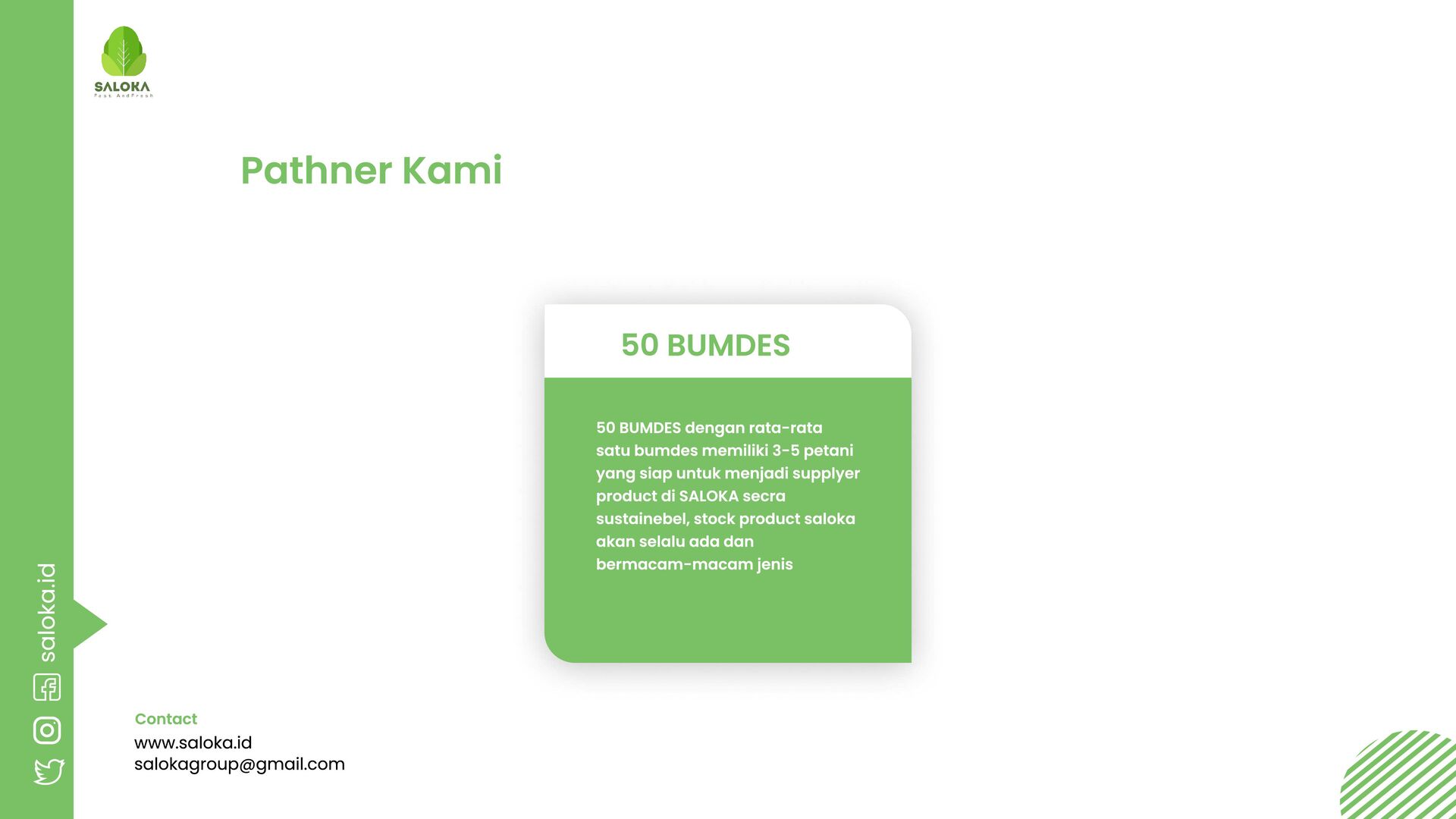 bumdes memiliki 3-5 petani yang siap untuk menjadi supplyer product di SALOKA secra sustainebel, stock product saloka akan selalu ada dan bermacam-macam jenis Contact www.saloka.id [email protected]