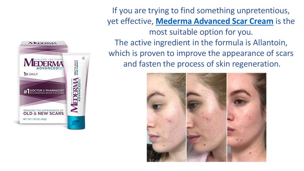requirements may be tricky. Misleading advertisements and inadequate information are often the main causes of making the wrong decision when looking for a scar healing product. The creams you are about to see are sorted based on their clinical trials, active ingredients, patient and dermatologist experience, how effective they are and their side effects.