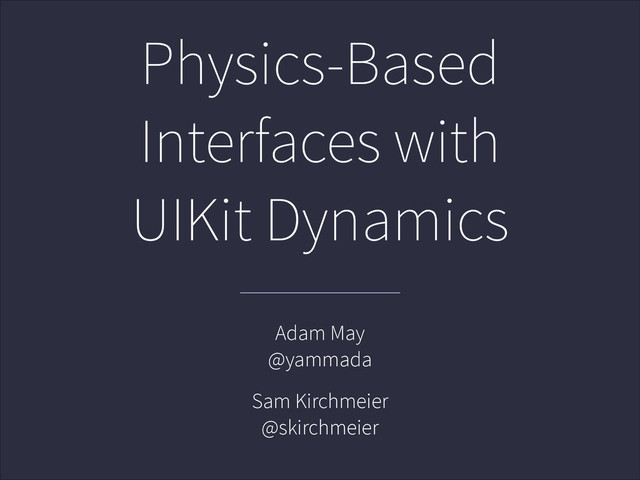 Physics-Based Interfaces with UIKit Dynamics Adam May @yammada ! Sam