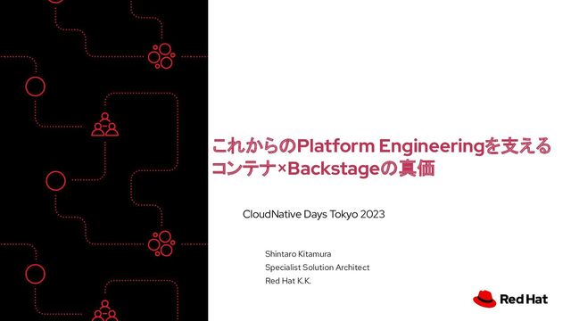 Docker Kubernetes Test Tools Git CI/CD Security 実際に動くサンプルアプリケーションとコード アプリケーションの開発に必要なCIパイプラインとGitOps Golden Pathの価値を正しく理解し活用するためのTechDocs PF Eng. Team Dev Team Platform Engineering Teamからのルールを付与しつつ 動くアプリとコードで開発者のノウハウ習得をサポート 開発のベストプラクティスを実際に動作する環境と共に開発者に提供する仕組み