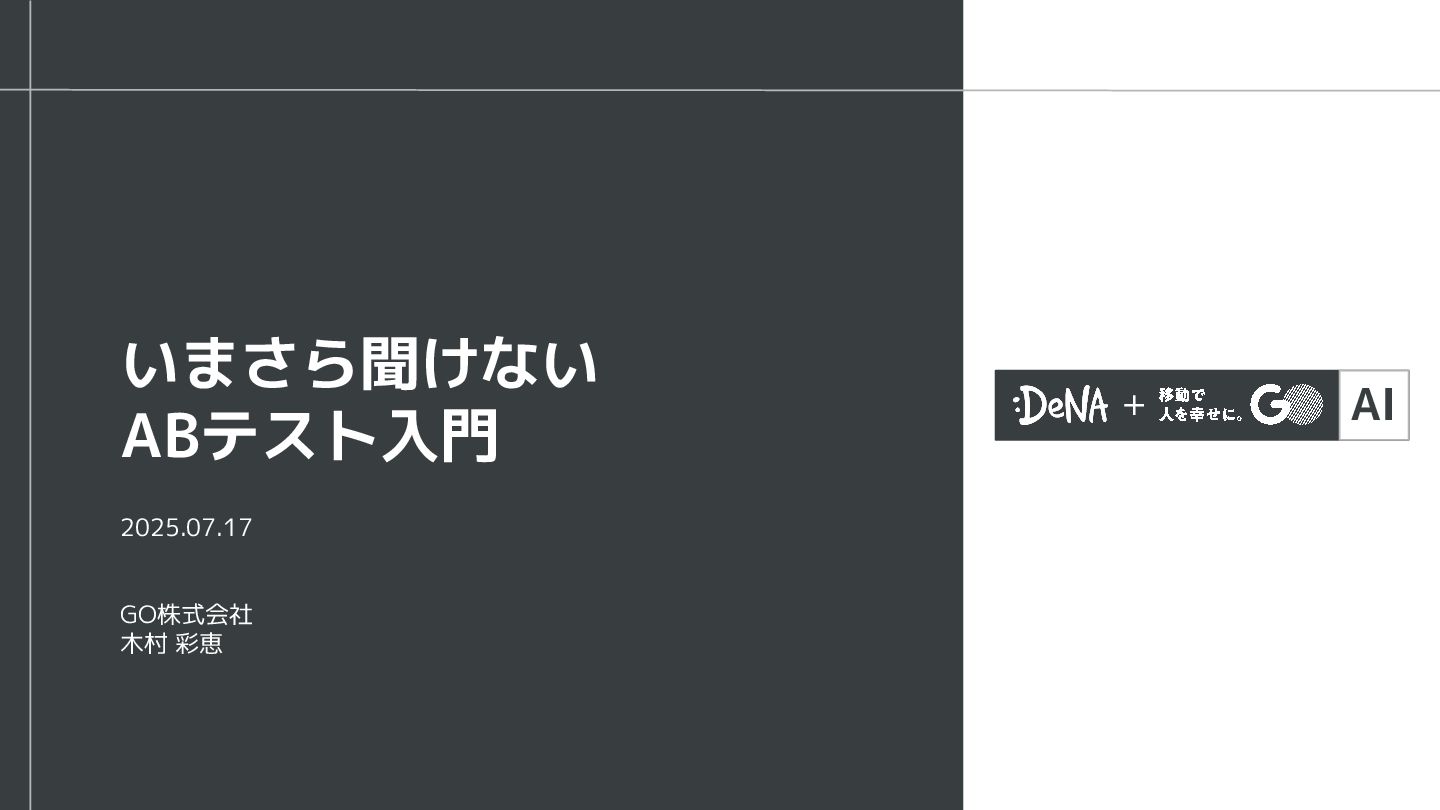 AI 2025.07.17 GO株式会社 木村 彩恵 いまさら聞けない ABテスト入門