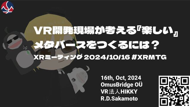 VR開発現場が考える『楽しい』 メタバースをつくるには? XRミーティング 2024/10/16 #XRMTG 16th, Oct, 2024 OmusBridge OÜ