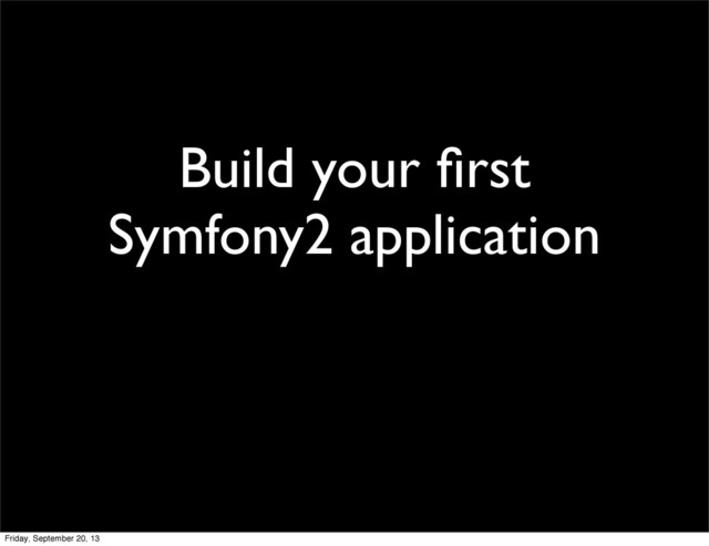 These are the slides to the "Build your first Symfony2 application" talk as I did it at Symfony Live London on September 20 2013.