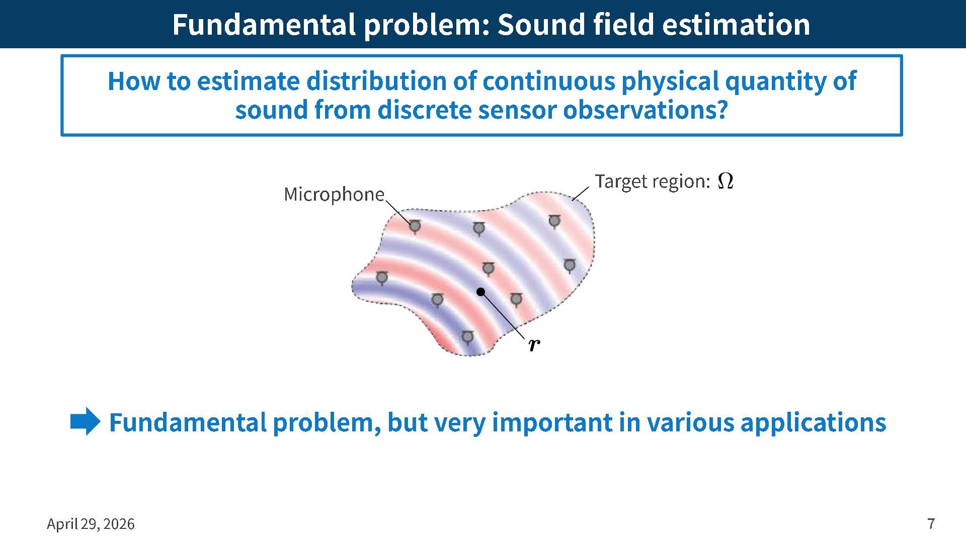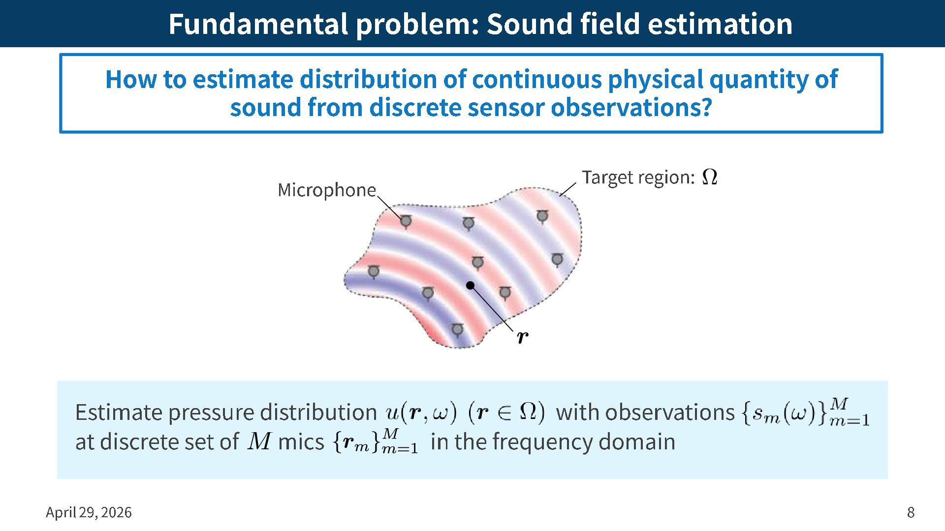 to estimate distribution of continuous physical quantity of sound from discrete sensor observations? Target region: Microphone Fundamental problem, but very important in various applications
