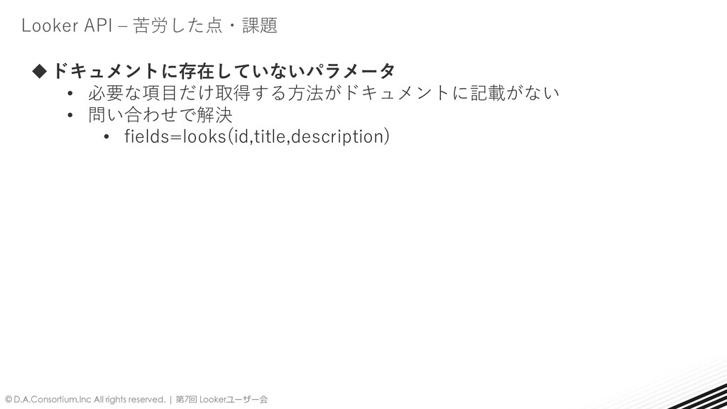 © D.A.Consortium.Inc All rights reserved. | 第7回 Lookerユーザー会 Looker API